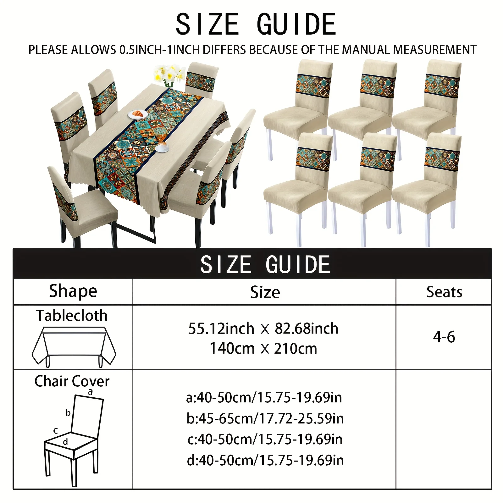 7 pièces Superbe ensemble de nappe rectangulaire + housse de chaise