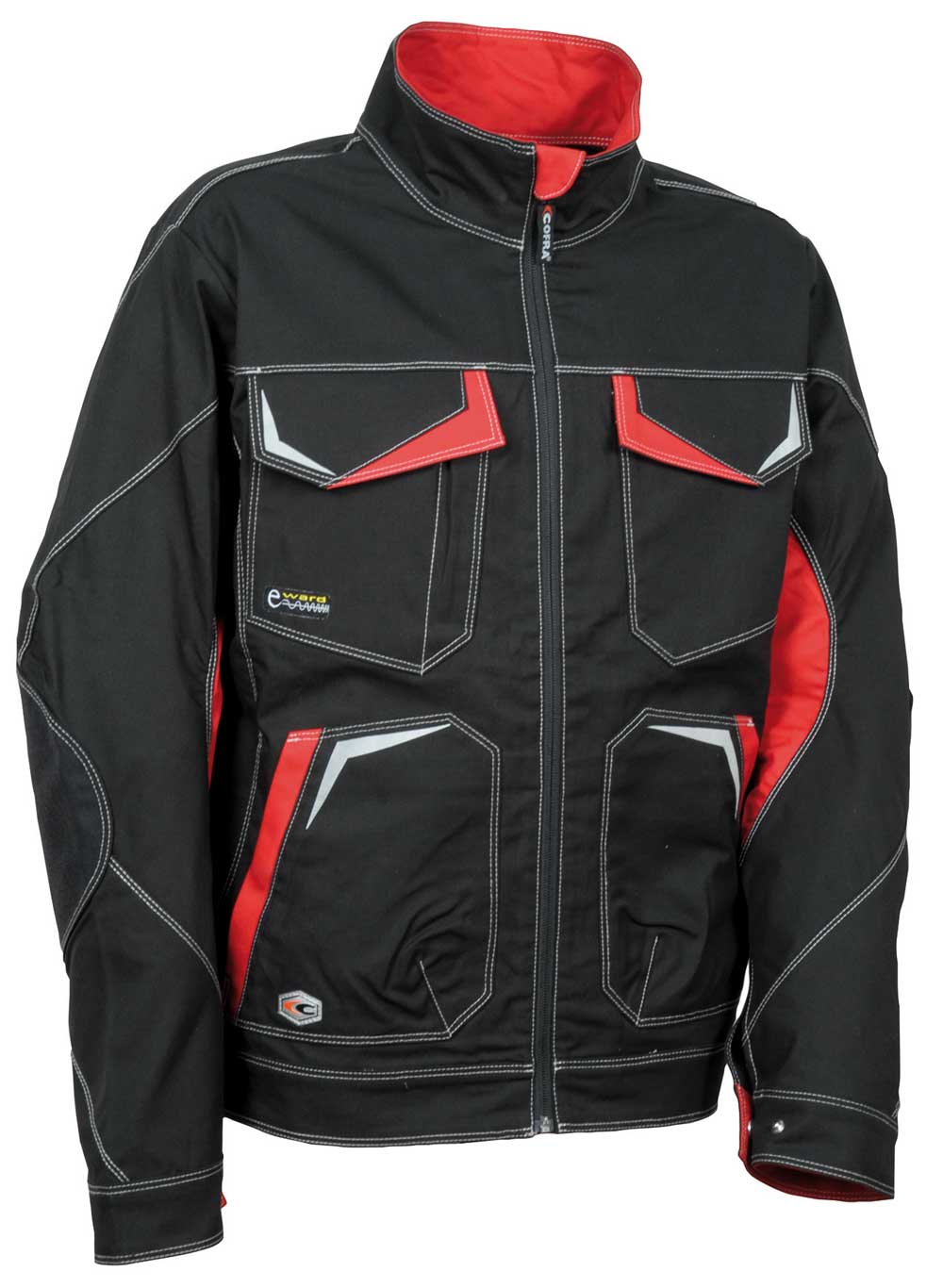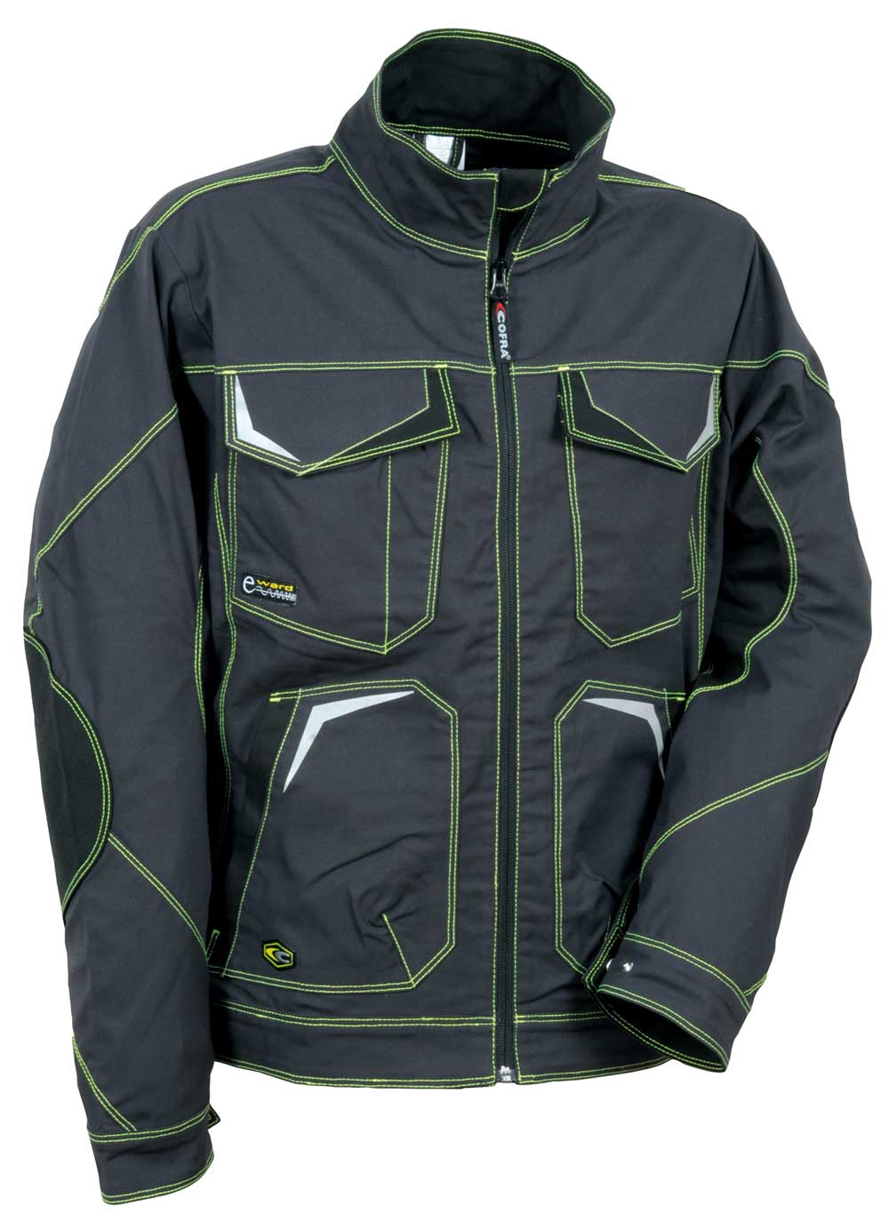 2 poches dans le bas avec snap. 2 poches poitrine avec velcro. Boucles pour aération. Insert à stylos. Inserts réfléchissantes 3M™ SCOTCHLITE™ Reflective Material – 8712 Silver Fabric. Larges poches intérieures. Manches à coupe ergonomique. Passant porte-badge. Pièces anti-abrasion sur les manches. Poche intérieure pour téléphone mobile en tissu E-WARD. Poignets ajustables. Rabat de protection au niveau du menton. Tissu élastique. Zip YKK® 64% polyester – 34% coton – 2% élasthanne + inserts anti-abrasion en 100% nylon.
