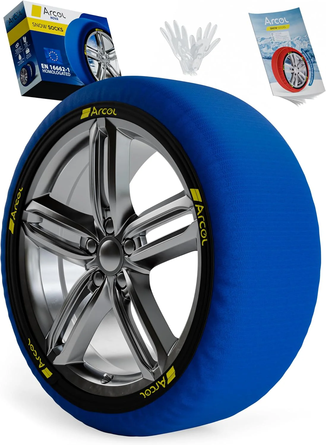 ARCOL Chaussettes à Neige Textile Homologué en 16662-1 – Deux Chaussette Neige pour Auto.