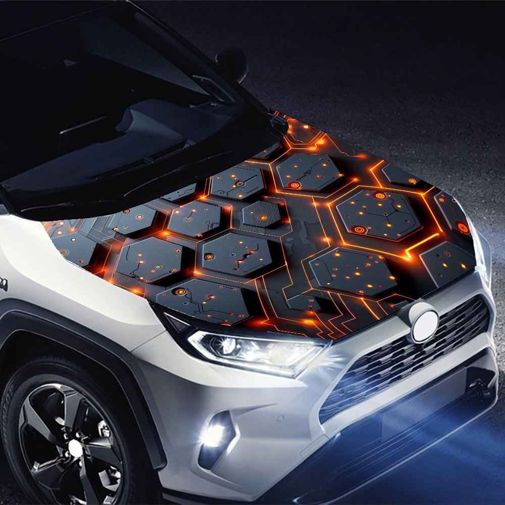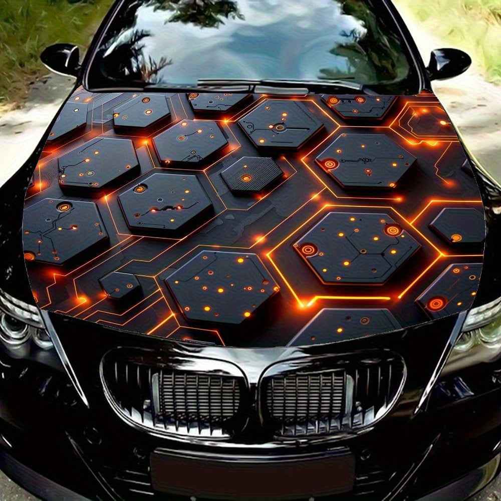 Autocollants hexagonaux noirs avec lignes orange brillantes
