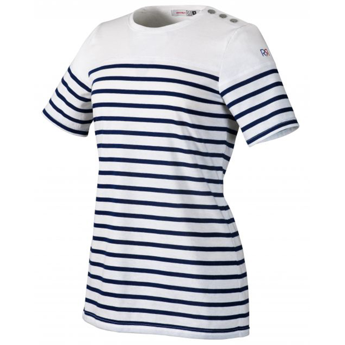 T-shirt marinière Col rond En coton peigné Empiècement uni sur le haut du vêtement Ouverture épaule gauche par pressions