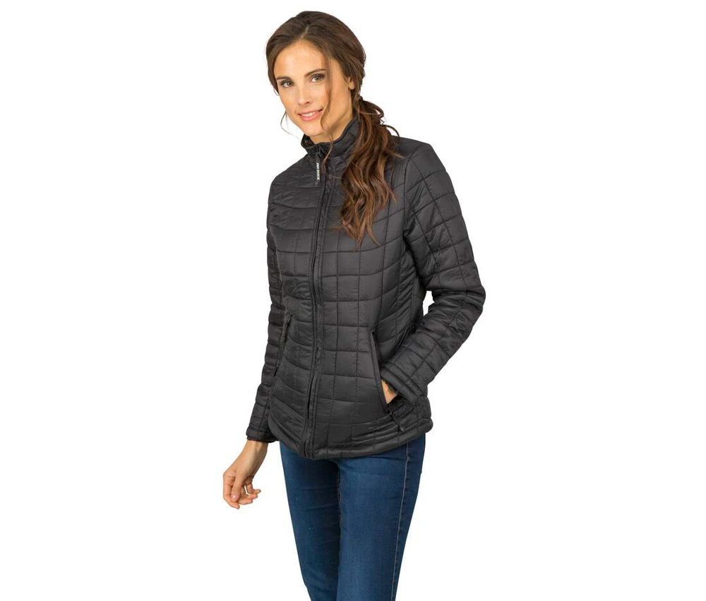 Veste femme style cavalier. Veste femme matelassée. Déperlant et coupe-vent. 2 poches zippées sur les côtés. 1 poche à l’intérieur zippée. 1 poche avec Velcro®. Poignets intérieurs élastiqués. Accès marquage dans le dos. 100% nylon 15D. Modèle homme : PK515