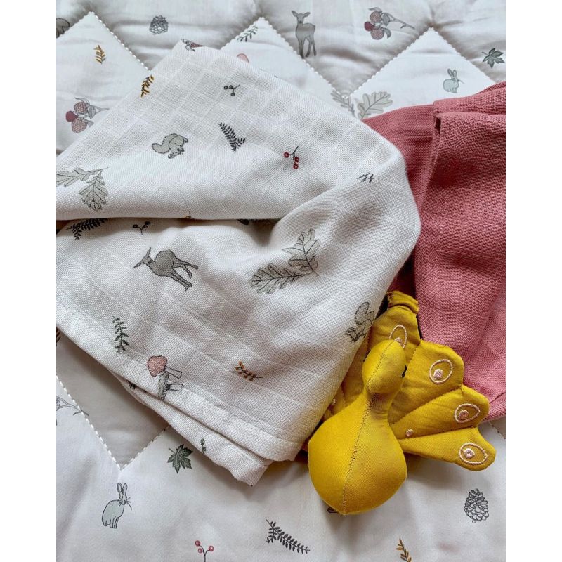 Je kan de doek gebruiken als handdoek, inbakerdoek, laken of dekentje in wieg of bedje, tijdens het voeden, over het aankleedkussen, in de maxi cosi en autostoel, in de kinderwagen en meer…