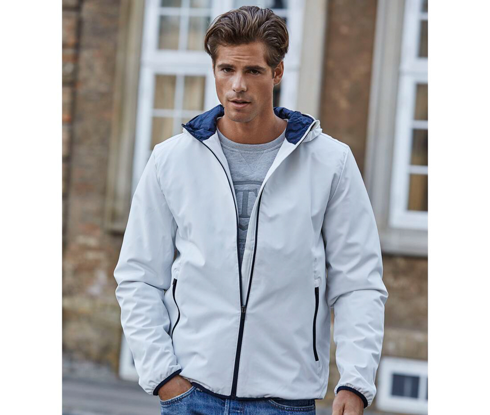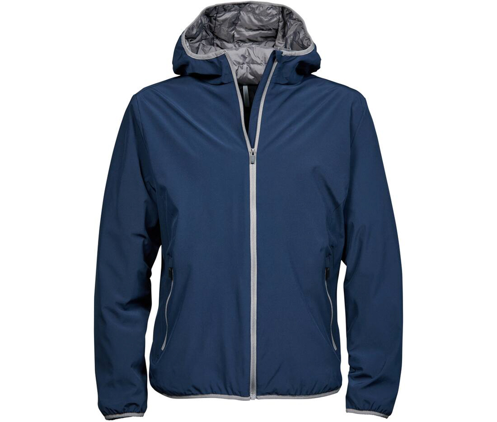 Veste compétition homme. Veste de sport Softshell 2 couches. Grand zip. Bonne isolation grâce à la qualité du rembourrage DuPont™. Capuche intégrée avec liseré contrasté et coutures décoratives. Protège-menton. 2 poches latérales zippées. Poche intérieure zippée. Ourlet et poignets élastiqués. 88% polyester/12% spandex. Doublure: 100% polyester 310T, rembourrage DuPont™.