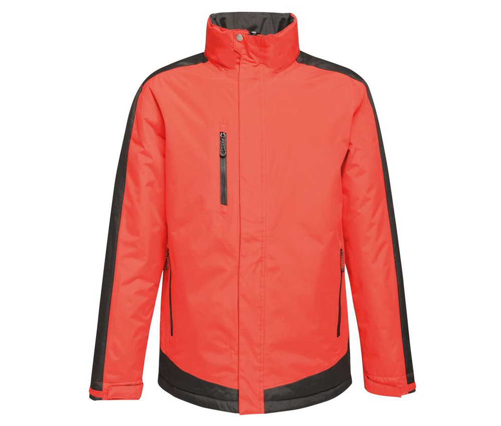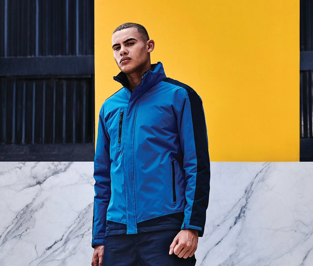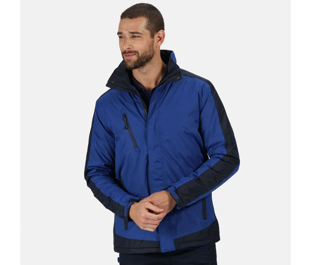 Veste isolante contrastée. Coupe-vent, imperméable et respirant Isotex 10000. Conforme à la norme EN 343 Class 3:2. Isolation Thermo-Guard. Coutures contrecollées. Capuche dans le col réglable. Poignets ajustables. Poche poitrine avec fermeture éclair technique imperméable. 2 poches avant zippées. Poche intérieure. Taille ajustable par cordon élastiqué. Accès personnalisation. 100% polyester matelassé.