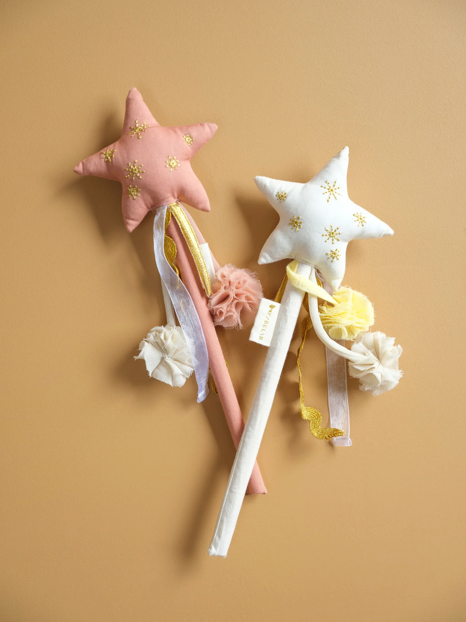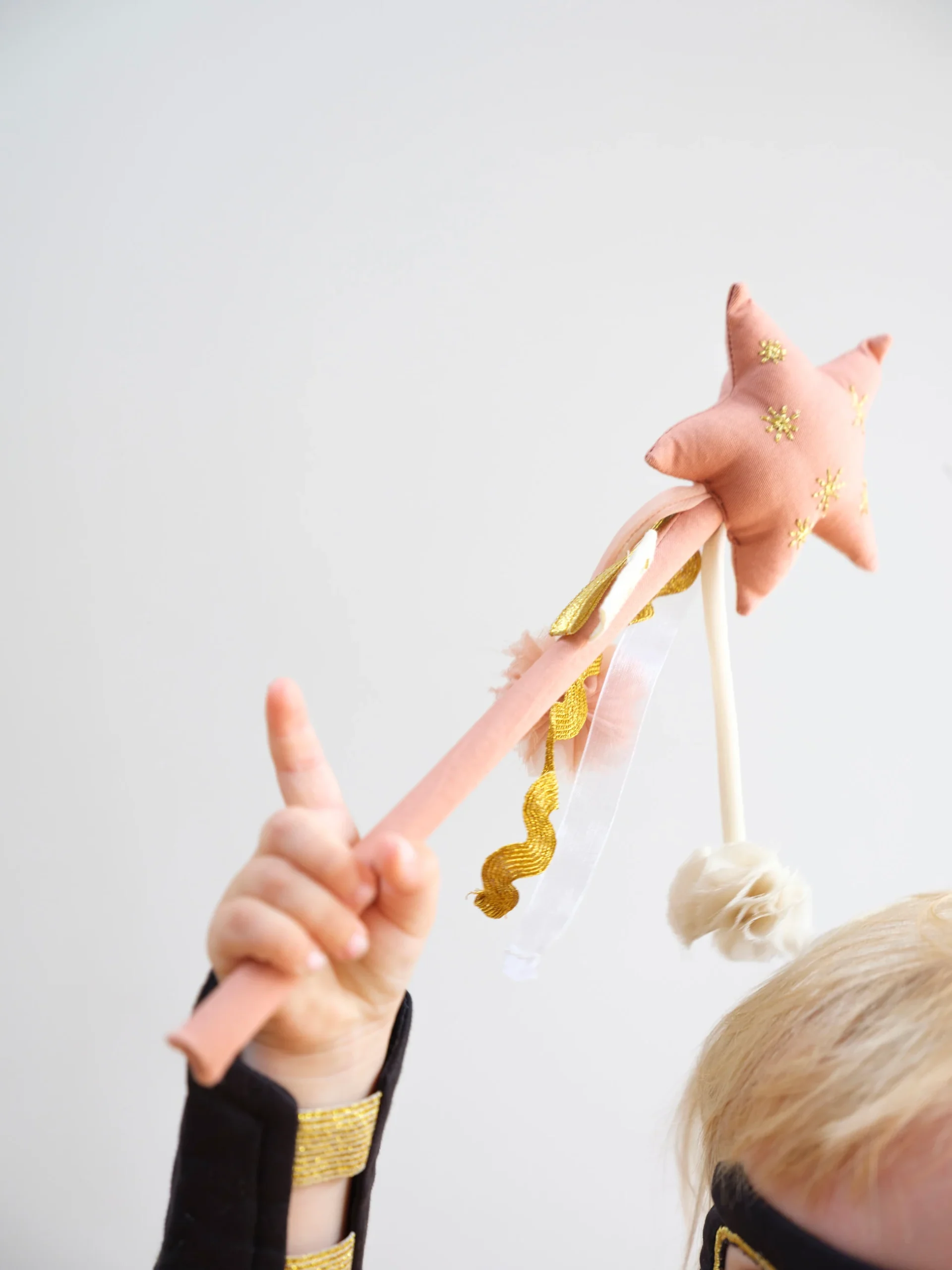 Met de magische toverstaf kan je kleintje sprookjesstof en liefde strooien en haar eigen avontuurlijke verhalen creëren. De toverstaf is gemaakt van pure, ongebleekte materialen en heeft gouden details en een ster aan de bovenkant om het nog magischer te maken. Combineer de toverstaf met de feeënverkleedset voor een snelle sprookjesachtige make-over en vele uren aan speelplezier.