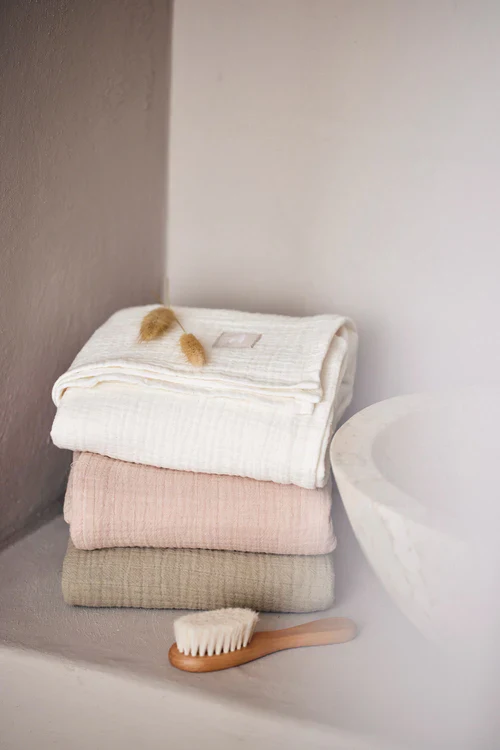 Onze hydrofiele doeken zijn de perfecte aanvulling op de verzorging van je baby en bieden comfort en veelzijdigheid in een handige set. De ‘Small’ variant, met een handig formaat van 70×70 cm, wordt geleverd in een praktisch 4-pack. Deze doeken zijn ideaal voor onderweg, in de kinderwagen of gewoon voor dagelijks gebruik. De ‘Large’ variant heeft royale afmetingen van 115×115 cm en wordt geleverd in een handig 2-pack. Deze grotere doeken zijn perfect om je kleintje heerlijk in te wikkelen, te gebruiken als spuugdoek, of voor andere dagelijkse benodigdheden. Deze speciale set combineert een harmonieuze kleurencombinatie van moonstone, Wild Rose en Olive Green, gecombineerd met rustig Ivory. Hierdoor voeg je niet alleen zachtheid en veelzijdigheid toe aan de babykamer, maar creëer je ook een stijlvolle en coherente inrichting. Houd je kleintje comfortabel en omringd met zachtheid met onze hydrofiele doeken.