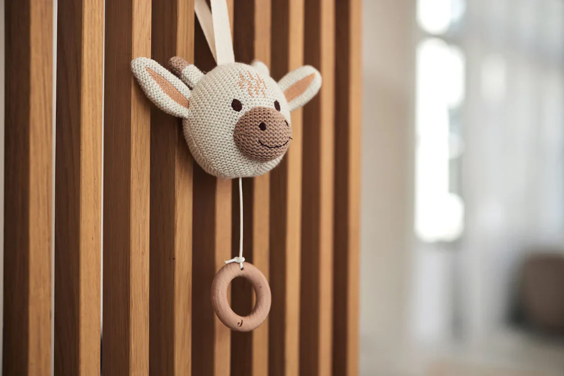 Dit is het diertje dat zal zingen voor jouw kleintje! Deze leuke muziekhanger speelt het liedje »sleep, dear child, sleep » als je aan het touwtje trekt. Dit kan rustgevend werken voor jouw baby. Je matcht deze muziekhanger goed met bijvoorbeeld het Animals speendoekje.