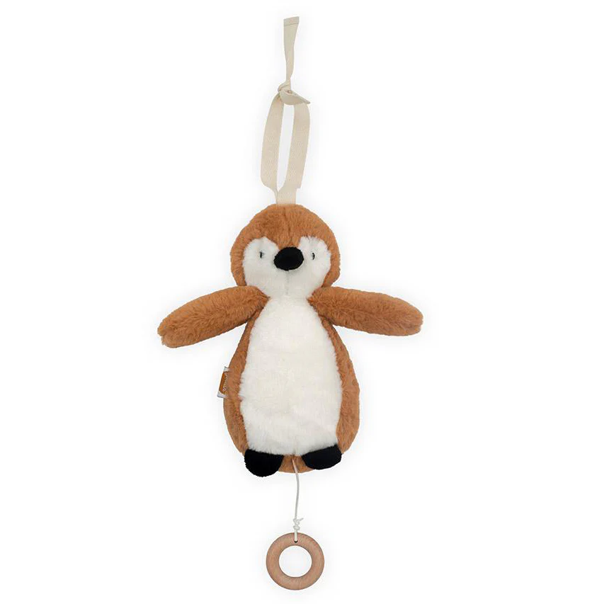 Help jouw kleintje om fijn in slaap te vallen met deze lieve muziekhanger. De pinguïn is gemaakt van heerlijk zachte pluche en heeft een houten ringetje aan het trekkoordje. De muziekhanger speelt een slaapliedje af en zo vertrekt jouw baby gemakkelijk naar dromenland. Hang de muziekhanger op het babykamertje of bij de box. Vind jij grijs of caramel mooier? Dit is ook een perfect kraamcadeau! Het muziekje wat de muziekmobiel afspeelt is ‘You are my sunshine’ en speelt ongeveer 60 seconden af.
