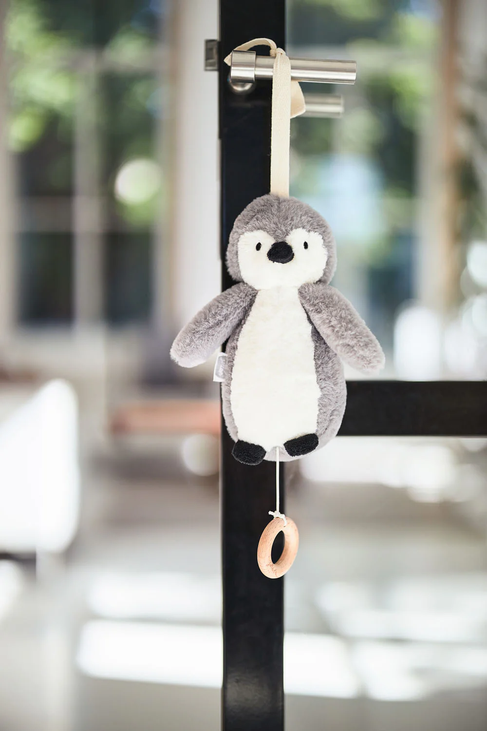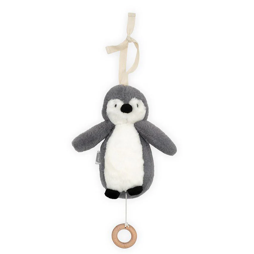Deze lieve muziekhanger zal je kleintje helpen bij het in slaap vallen. De pinguïn wordt gemaakt van heerlijk zachte pluche en is voorzien van een houten ringetje aan het trekkoordje.