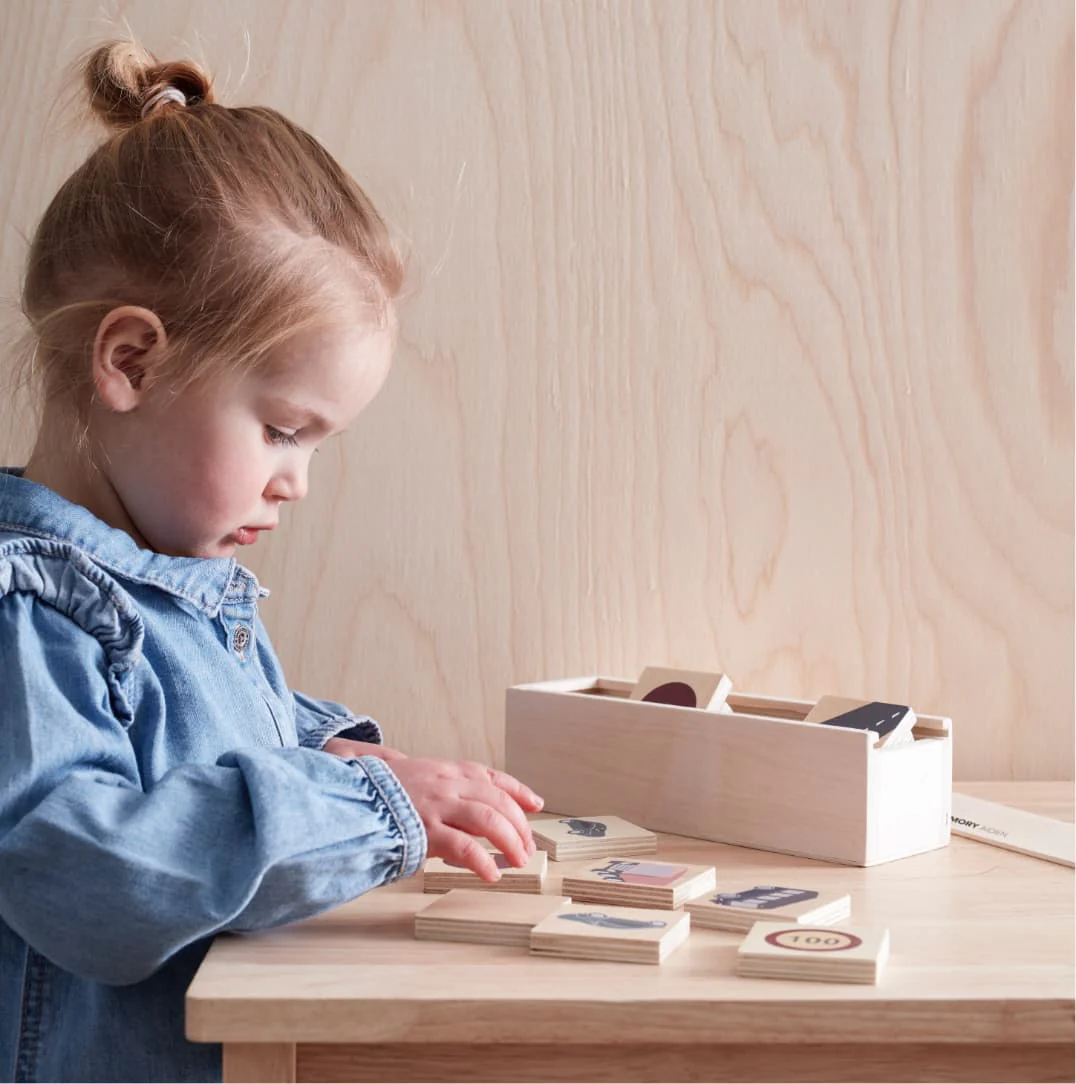 Dit houten geheugenspel van Kids Concept is een geweldige manier om samen met je kind geheugen en concentratie te oefenen. Het Memospel bevat 20 blokjes met afbeeldingen van auto’s, vrachtwagens en verkeersborden. Perfect om letters te leren en te oefenen, terwijl je kind zich verdiept in het herkennen van verschillende voertuigen en verkeersborden. Dit spel stimuleert de fijne motoriek, concentratie en geheugen.