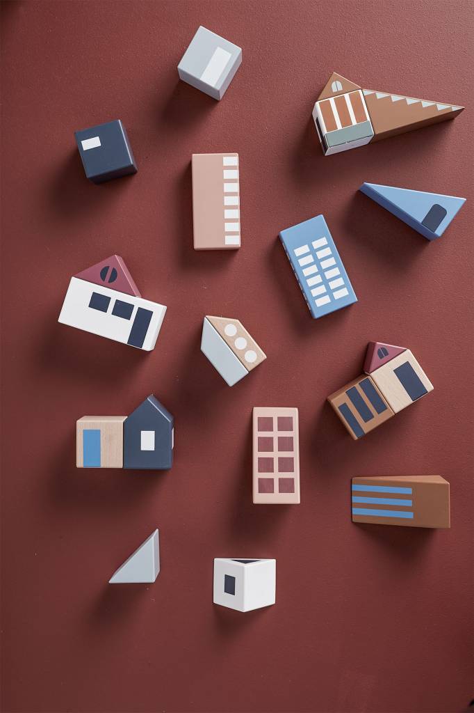 Gebruik je fantasie om je eigen stad te bouwen met deze schattige houten blokken. Flatgebouwen, fabrieken, bruggen en vele andere soorten gebouwen die een stad vormen. Verschillende veelkleurige vormen, patronen en formaten om elke stadsuitstraling op te creëren. Laat je verbeelding los bij het bouwen van je eigen stad met de City blokken van Kid’s Concept