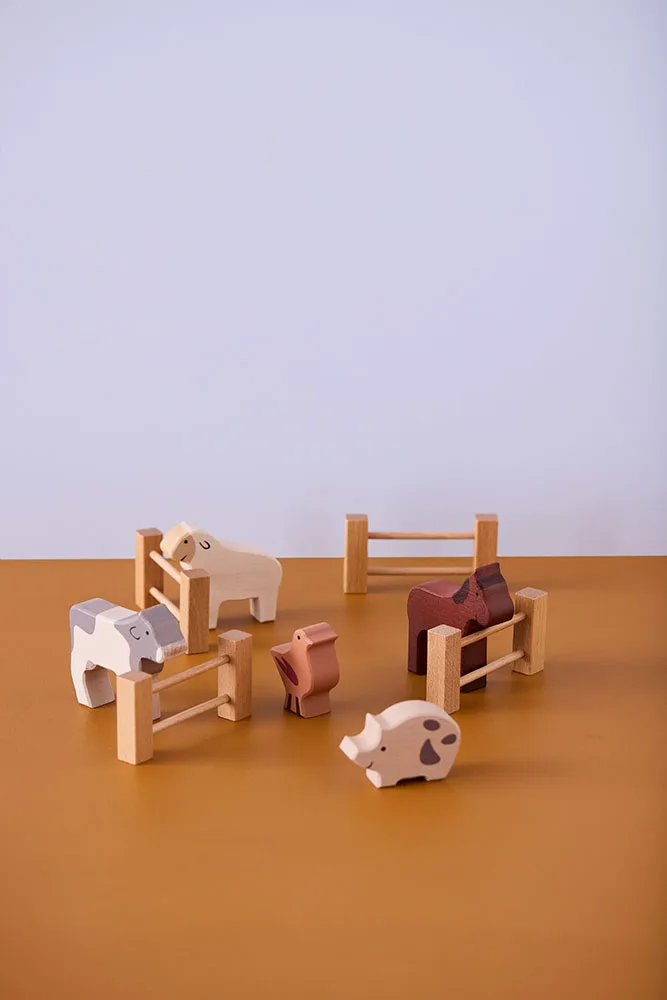 De dieren en hekken zijn zorgvuldig vervaardigd van duurzaam FSC-gecertificeerd beukenhout, waardoor ze stevig en veilig zijn voor kleine kinderhandjes. Ideaal voor kinderen vanaf 1 jaar, dit speelgoed stimuleert de fijne motoriek, creativiteit en sociale interactie.