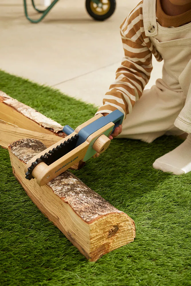 De houten motorzaag is ideaal voor rollenspellen en biedt een speelse manier om de wereld van bouwen en gereedschappen te ontdekken!
