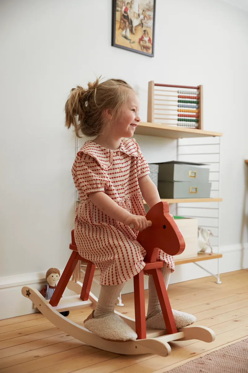 Breng kunst en traditie naar de speelkamer met dit prachtige schommelpaard van KidsConcept, geïnspireerd door het beroemde kunstenaarsechtpaar Carl en Karin Larsson. Dit moderne, maar tijdloze hobbelpaard is niet alleen een blikvanger, maar ook perfect om op te schommelen en uren speelplezier te beleven.