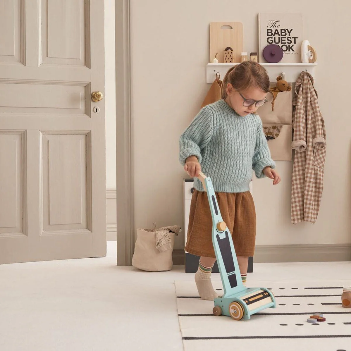 Laat je kleintje de wereld van huishoudelijke taken ontdekken met deze leuke en functionele houten stofzuiger!