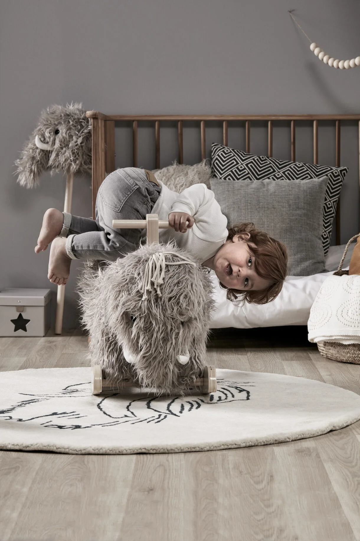 - Comfortabel en Stevig: Gemaakt van hoogwaardig hout en zachte materialen, biedt deze mammoet een stevige en comfortabele zitplaats voor jouw kleintje.