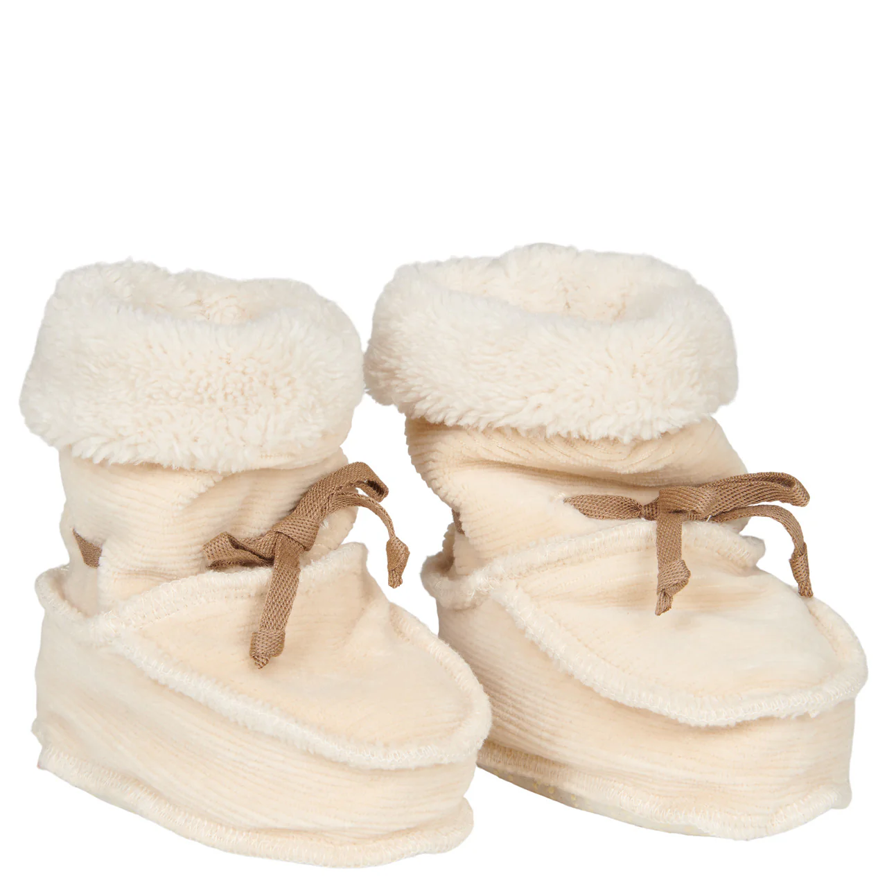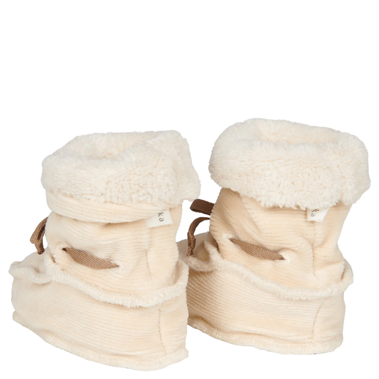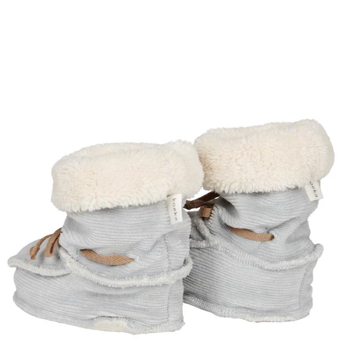 Met deze Koeka slofjes stijgt het knuffelgehalte van je baby tot grote hoogte. Deze one size babyslofjes zijn gemakkelijk aan en uit te trekken maar toch schopt je baby ze niet zomaar uit door de vetersluiting romdom de enkel. Ze zijn lekker warm, zitten comfortabel en zijn super zacht voor de kleine voetjes van je baby. Het detail van de vetersluiting en het Koeka logo op de achterkant maken de slofjes onweerstaanbaar zoet waardoor ze ook een geliefd cadeau-artikel zijn.
