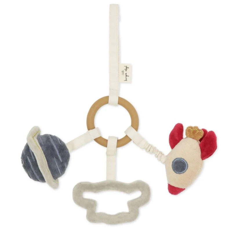 Deze leuke activiteiten ring met speeltjes is perfect voor je baby om mee te spelen en ontdekken. Om naar te kijken, naar te grijpen, aan te voelen, mee te spelen en zelf op te bijten: dit ruimte activiteitenspeeltje zal sowieso in de smaak vallen van je kleintje.