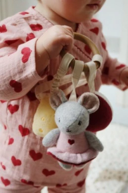 Deze lieve activiteitenring met knuffelbeertjes is speciaal ontworpen om de zintuigen van je baby te stimuleren. Gemaakt van een mix van biologisch katoen en wol en bevestigd aan een siliconen ring, is deze ring perfect voor pasgeborenen om te ontdekken en mee te spelen.