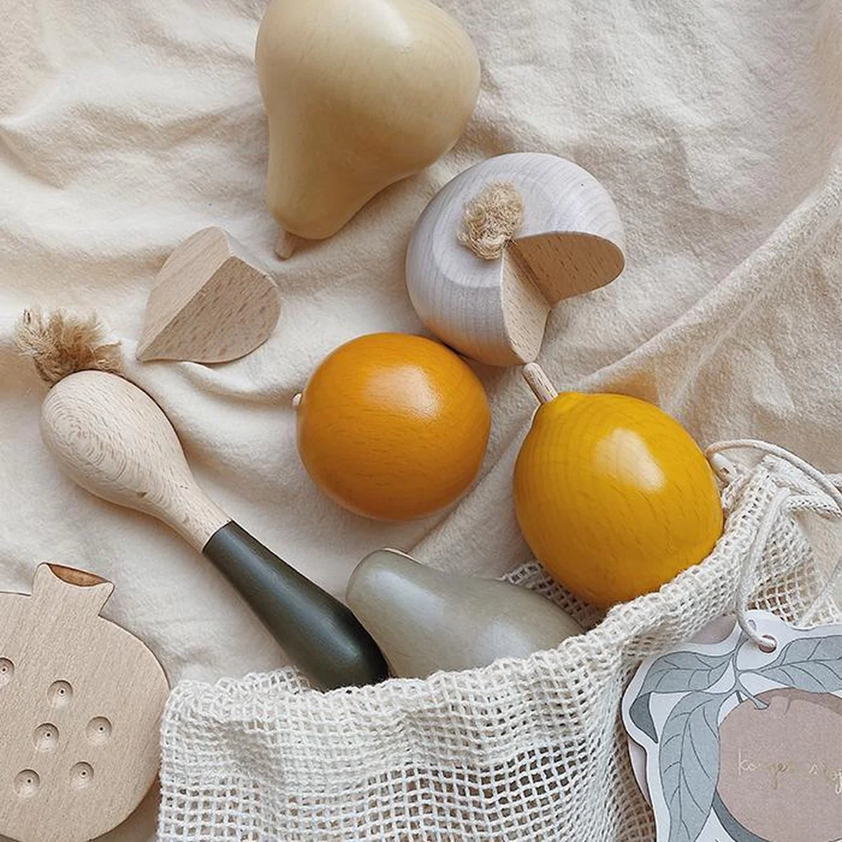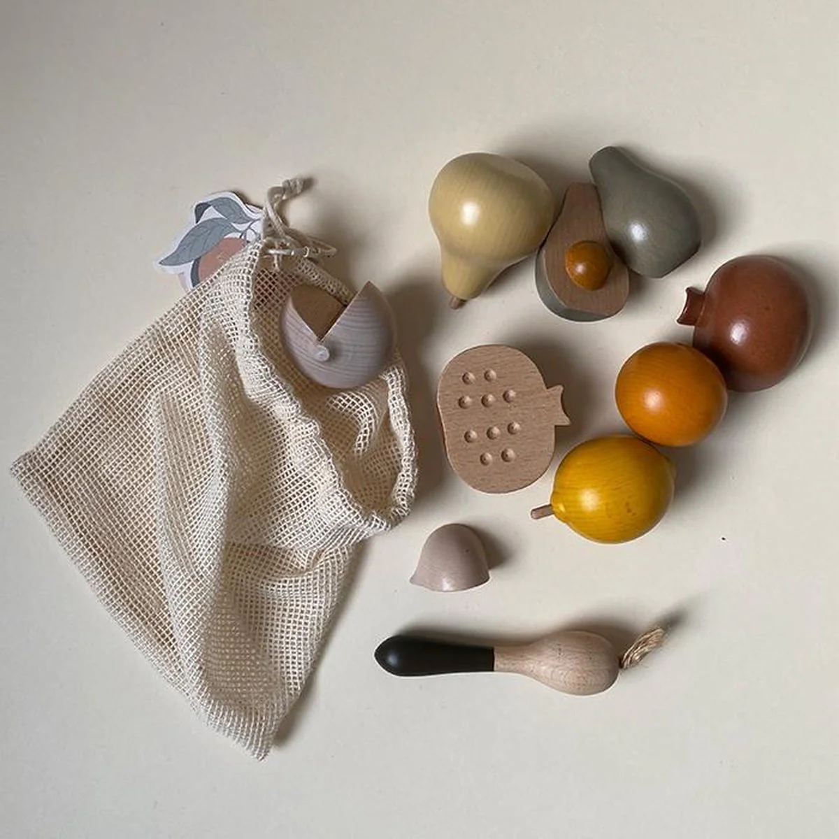 Met dit tasje vol fruit en groente kan je kleintje de lekkerste denkbeeldige maaltijden bereiden. In het tasje zit een avocado, een prei, knoflook, een peer, een ui, een sinaasappel en een citroen. De onderdelen zijn gemaakt van 100% FSC-gecertificeerd beukenhout en CE-getest volgens Europese norm EN-71-1. Het houten speelgoed is geschikt voor kinderen vanaf 3 jaar en kun je reinigen met een vochtige doek.