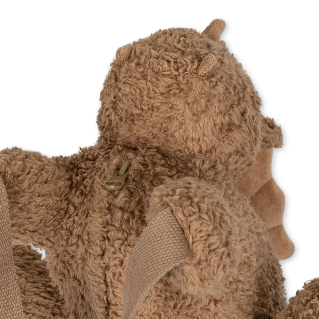 Rugzak in de vorm van een draak met verstelbare schouderriemen. De rugzak heeft een handige ophanglus en een ritsvak. Kenmerken 100% biologisch sherpa-fleece en vulling van gerecycled polyester Kleur: tiger eye