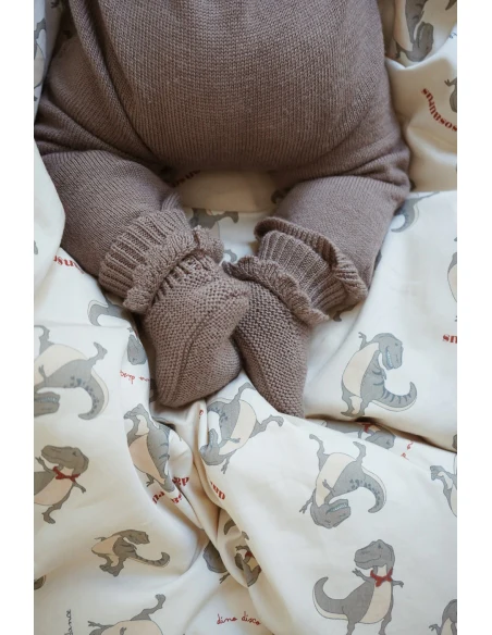Warme en zachte pantoffels gemaakt 100% biologische merinowol. Met omgevouwen geribbelde manchetten en gebreide « blad » details. De slofjes zitten heerlijk rond de enkels en zijn eenvoudig aan en uit te trekken.