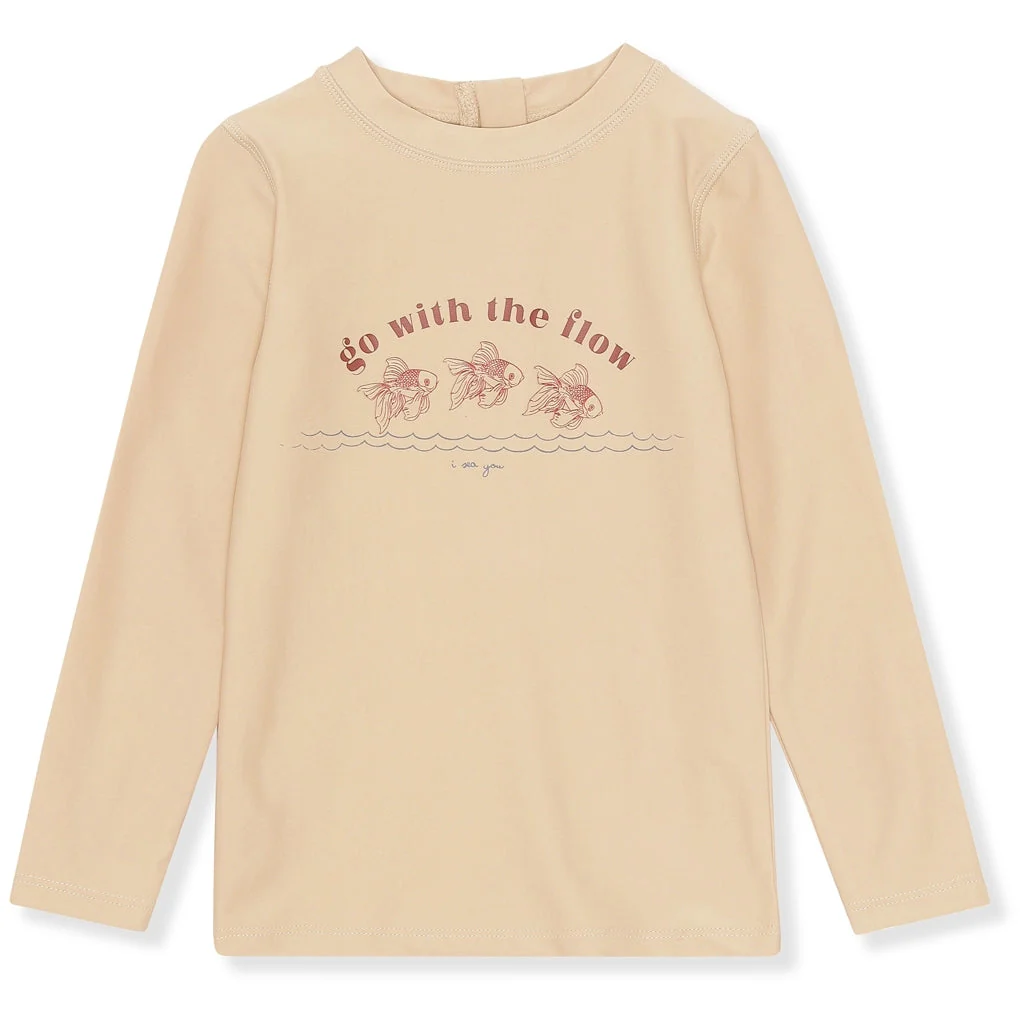 Zwem t-shirt van Konges Slojd gemaakt van 80 procent gerecycled polyester en 20 procent elastaan. De blouse heeft een rits met omslag in de rug voor makkelijk aankleden. De rekbare stof beschermt tegen de UV-stralen van de zon met de hoogste UV-beschermingsfactor, UPF 50+.