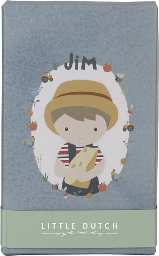 Maak kennis met de schattige Jim! Jim is dol op het laten zien van zijn boerderij avonturen. Hij is een echte kaasliefhebber en beleeft talloze spannende momenten op de boerderij. Deze knuffelpop van pluche wordt met liefde verpakt in een prachtige doos.