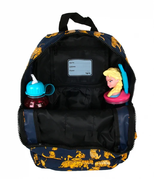 De rijke rugzak heeft een stoere tijgerprint, die zowel de kinderen als de modebewuste ouders aanspreken. Naast dat de rugak er mooi & rijk uitziet, is de rugzak erg uitgebreid. De rugzak heeft een hoofdvak waarin ruimte is voor een broodtrommel en twee drinkbekers. Voor deze drinkbekers heeft de rugzak twee netvakjes, waardoor de bekers altijd rechtop blijven staan. Hiernaast heeft de tas twee zijvakken, waar bijvoorbeeld ook een beker ingedaan kan worden. Er zit een naamlabel op de achterkant de tas, waardoor de eigen tas altijd herkend kan worden. In het voorvak zit tevens een vakje voor een mobiel. De rugzak is comfortabel te dragen dankzij gewatteerde schouderbanden. De backpack heeft een regenhoes die over de tas heen gedaan kan worden tijdens de regenachtige dagen. Hierdoor blijft je tas altijd droog en mooi!
