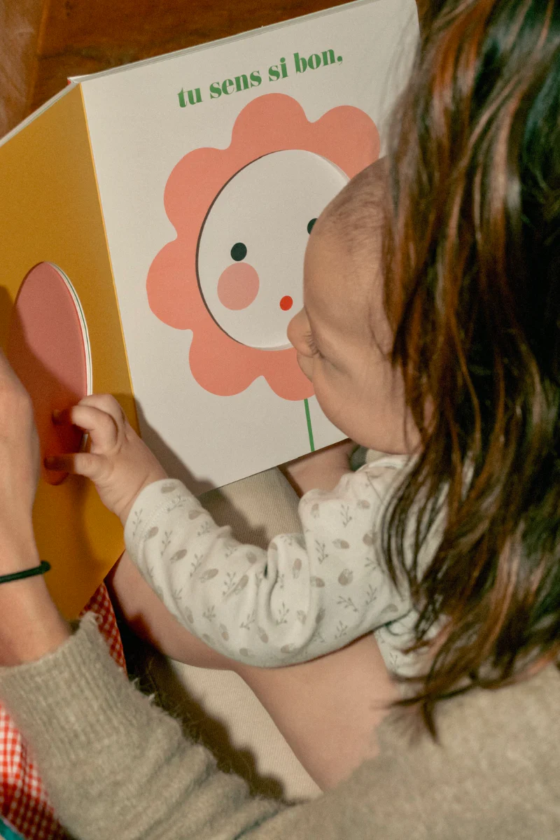 « C’est toi ? » est un livre miroir qui énumère les surnoms de bébé et favorise l’éveil et la reconnaissance de soi dès le plus jeune âge. Quand on arrive à la dernière page… surprise ! Bébé se découvre dans un grand miroir : un moment de découverte de soi, qui offre au tout-petit l’occasion de s’observer de près, et d’explorer toute la palette d’expressions de son visage.