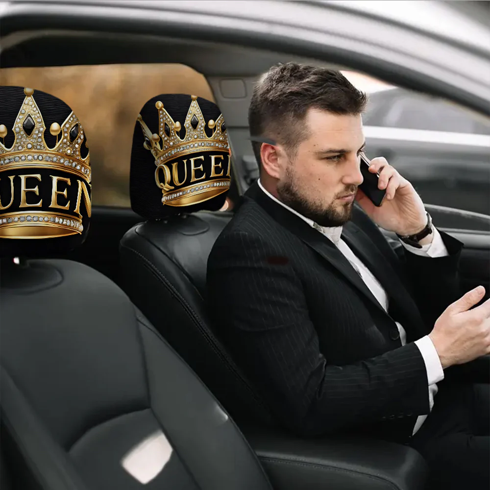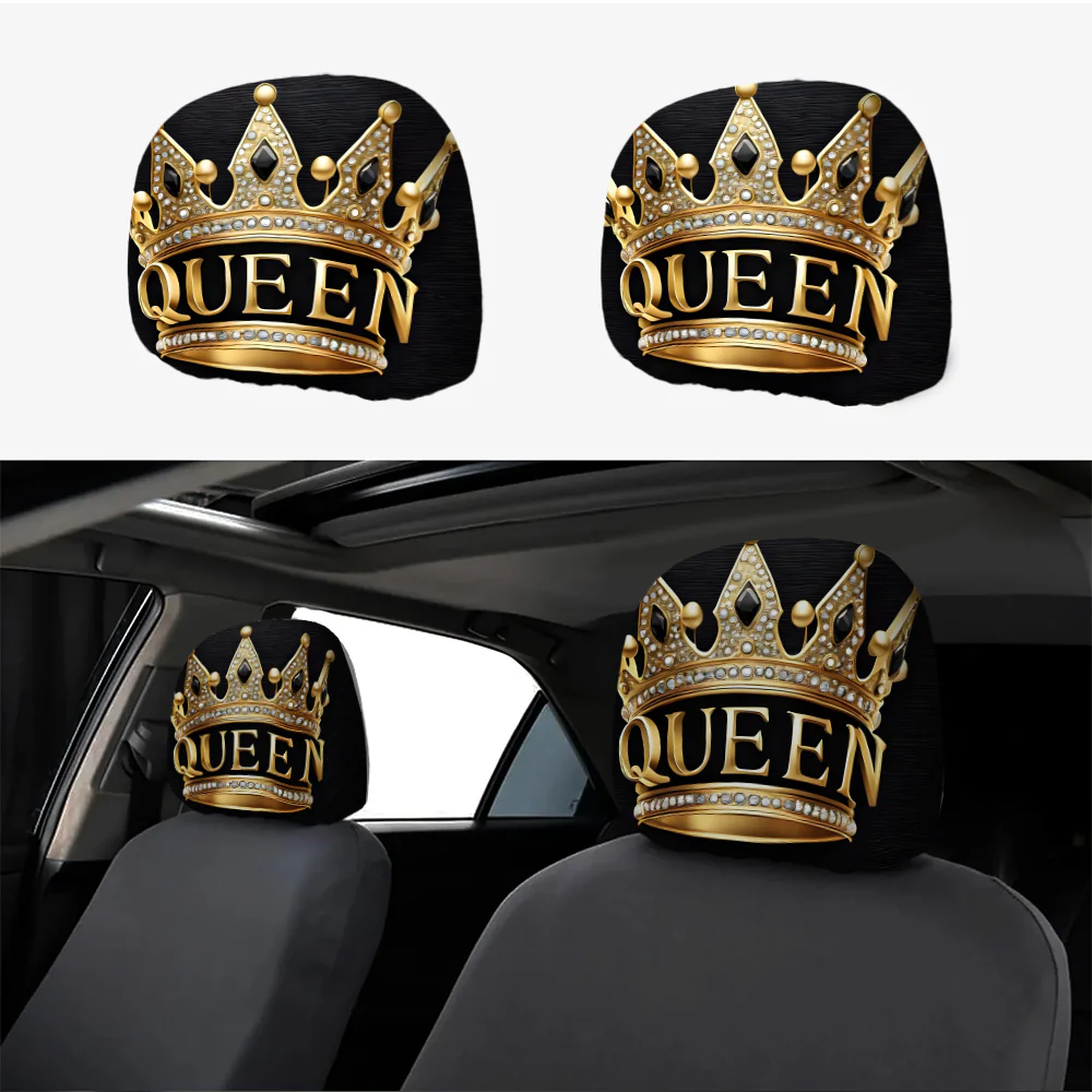 Lot de 2 housses d’appui-tête de voiture à imprimé couronne