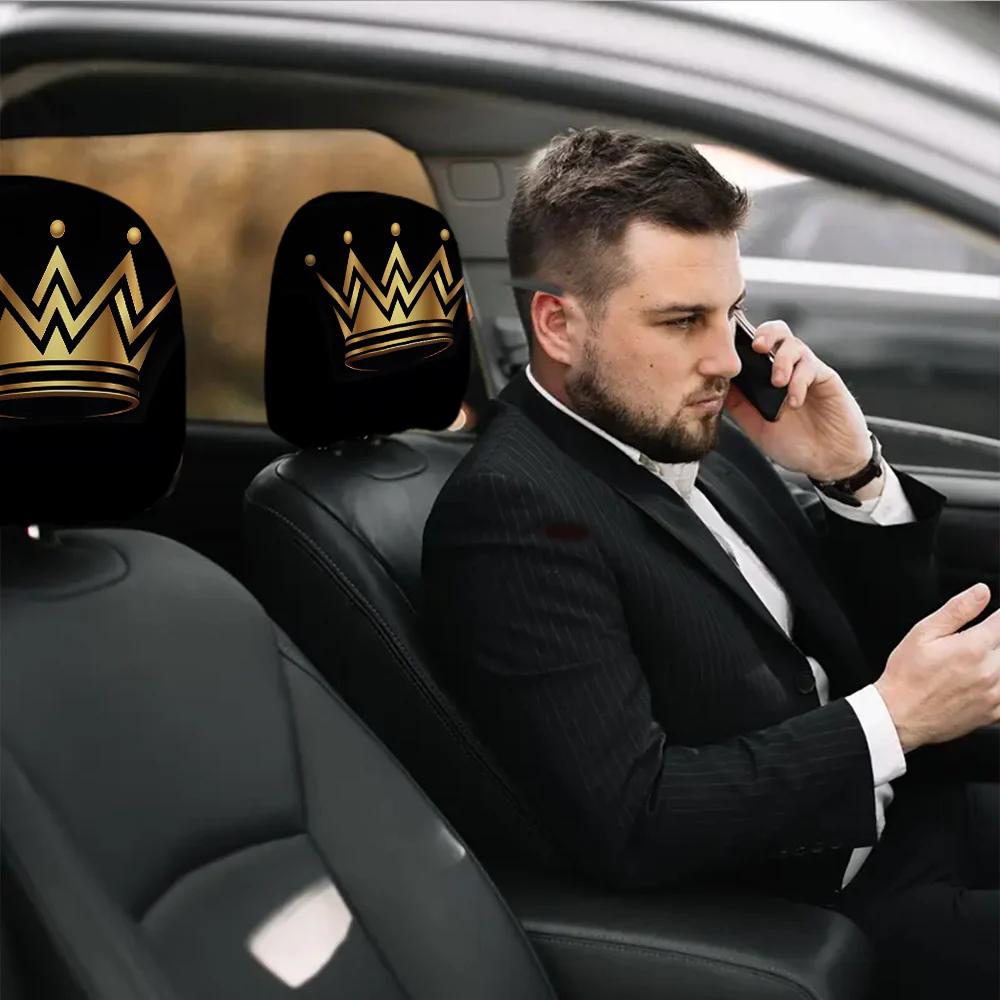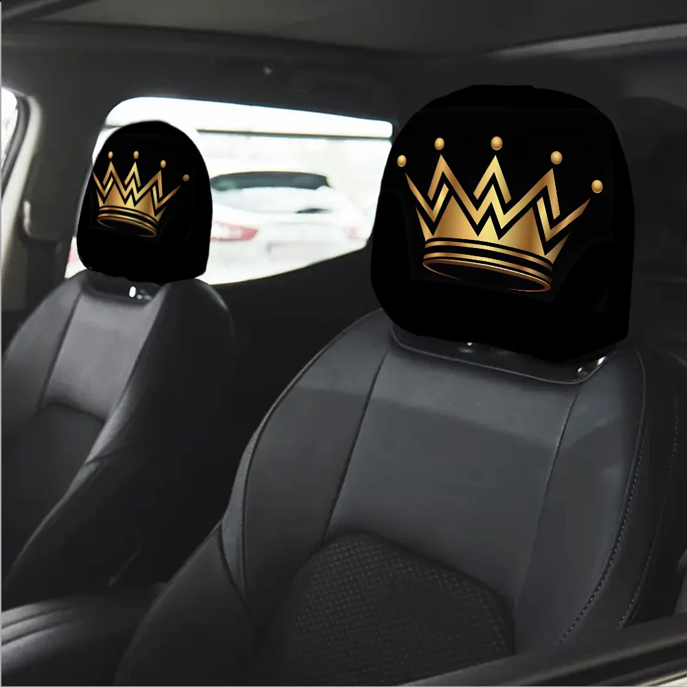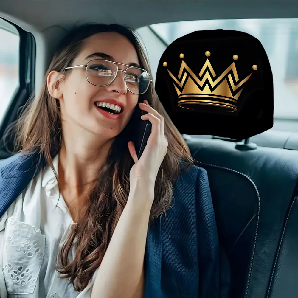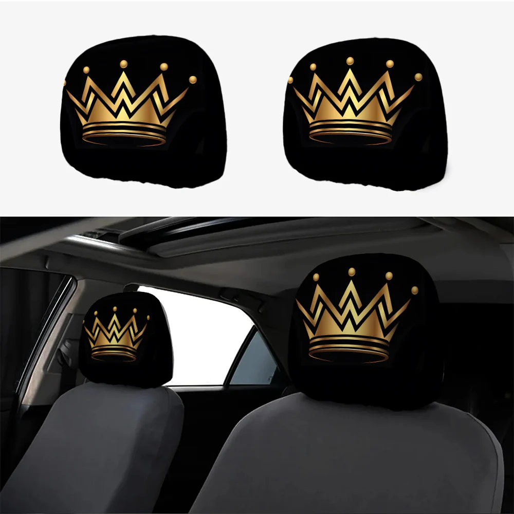 Lot de 2 housses d’appuie-tête de voiture à imprimé couronne dorée