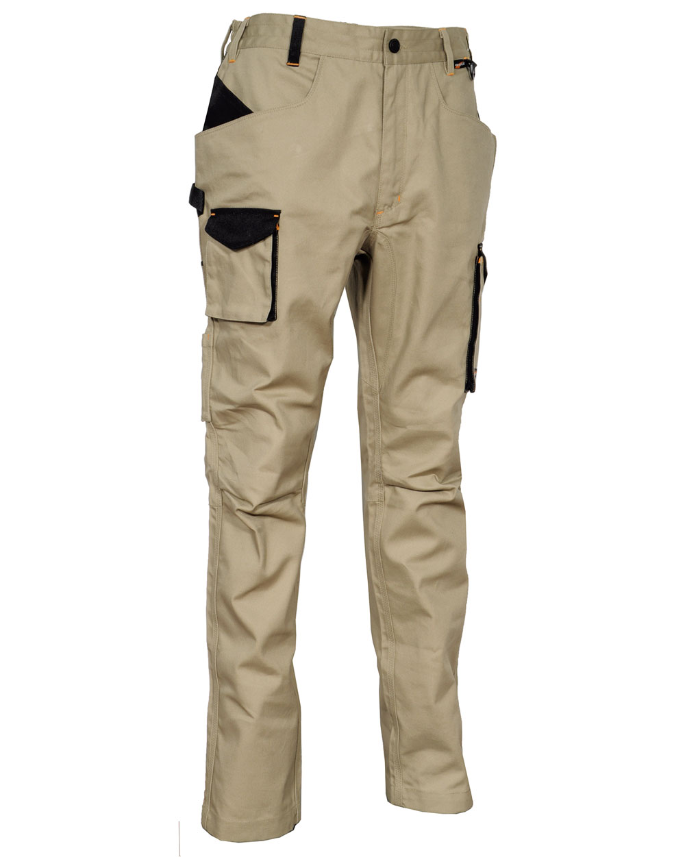 2 poches larges à l’avant. D-Ring. Double poche à l’arrière avec velcro. Elastique intérieur à la taille. Entrejambe renforcé. Inserts réfléchissantes 3M™ SCOTCHLITE™ Reflective Material – 8725 Silver Fabric. Jambes et genoux à coupe ergonomique. Passant porte-marteau. Poche à outils à l’avant. Poche latérale. Poche pour mètre pliant. Poche pour porte-monnaie. Tissu élastique. 64% coton – 34% polyester – 2% élasthanne.