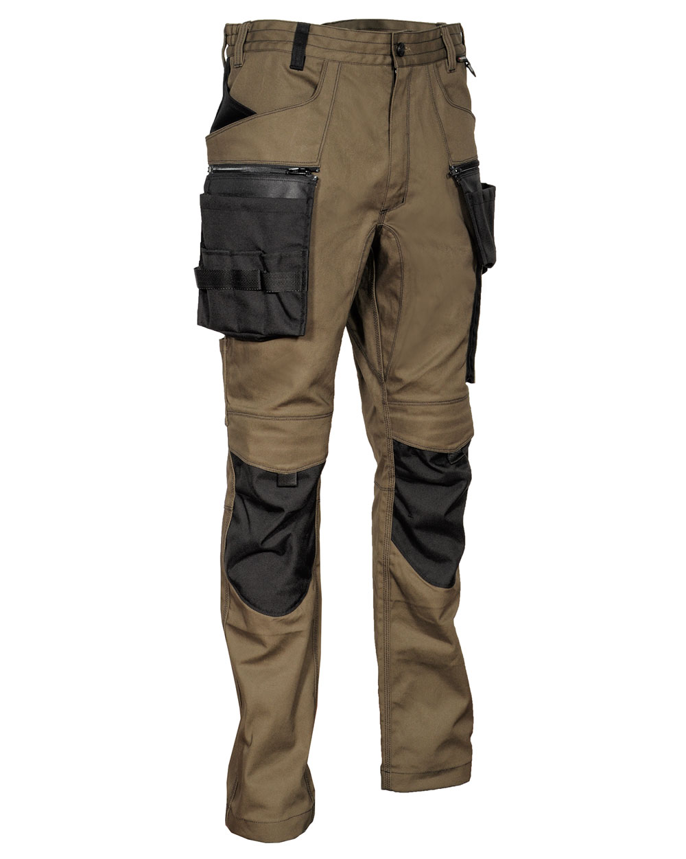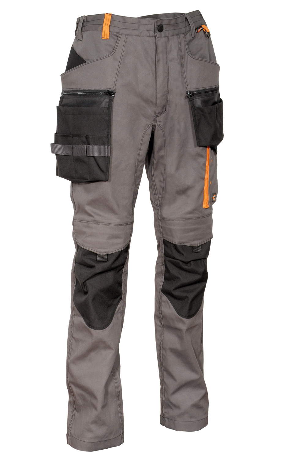 2 poches larges à l’avant. D-Ring. Double poche à l’arrière avec velcro. Elastique intérieur à la taille. Entrejambe renforcé. Inserts réfléchissantes 3M™ SCOTCHLITE™ Reflective Material – 8725 Silver Fabric. Jambes et genoux à coupe ergonomique. Passant porte-marteau. Poche latérale. Poche pour mètre pliant. Poche pour porte-monnaie. Poches extérieures porte-clous en nylon. Détachables avec le zip. Poches pour les genouillères en nylon ajustables. Tissu élastique. 64% coton – 34% polyester – 2% élasthanne + inserts anti-abrasion en 100% nylon.