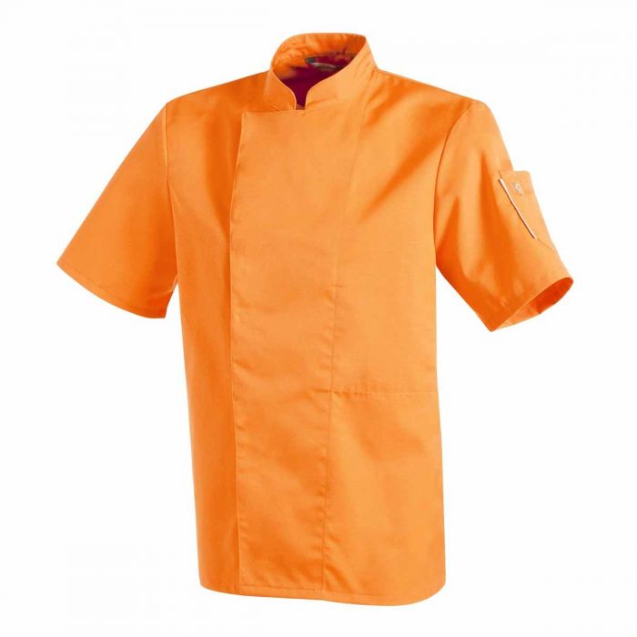 Veste de cuisine Col officier Boutons pressions cachés Liseré de couleur sur poche stylo Poche stylo plaquée sur manche