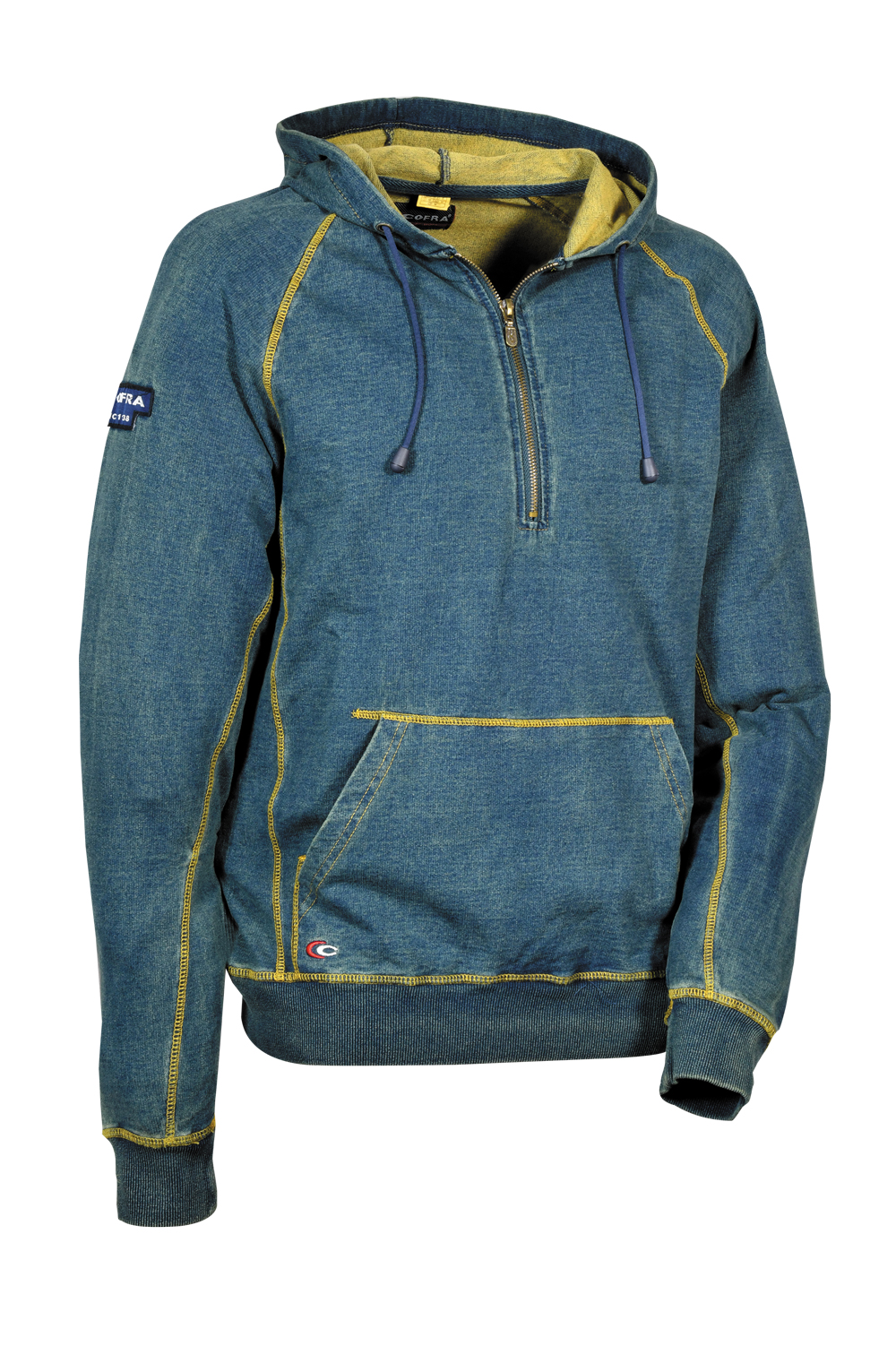 1 poche large à l’avant. Capuche. Ouverture avec zip. Poignets et ceinture en mille-raies élastique. Zip YKK® 96% coton – 4% élasthanne.