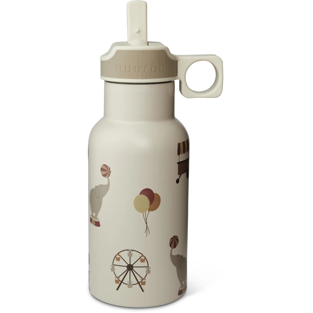 De Nuuroo drinkfles is gemakkelijk vast te houden met kleine handjes, b.v. door de ronde vorm. De Drinkfles is gemaakt van roestvrij staal, waardoor hij bestand is tegen stoten en krassen. Juno bidon wordt geleverd met een activiteitsdeksel met perfecte en strakke drinkfunctie met siliconen tuit. De deksel is voorzien van handvatten en kan eenvoudig aan een tas of kinderwagen worden bevestigd. Capaciteit: 350 ml.
