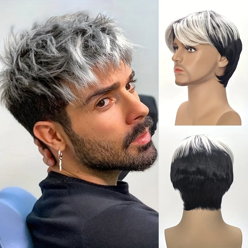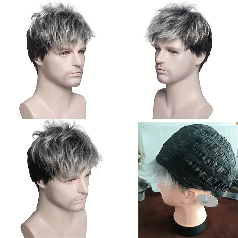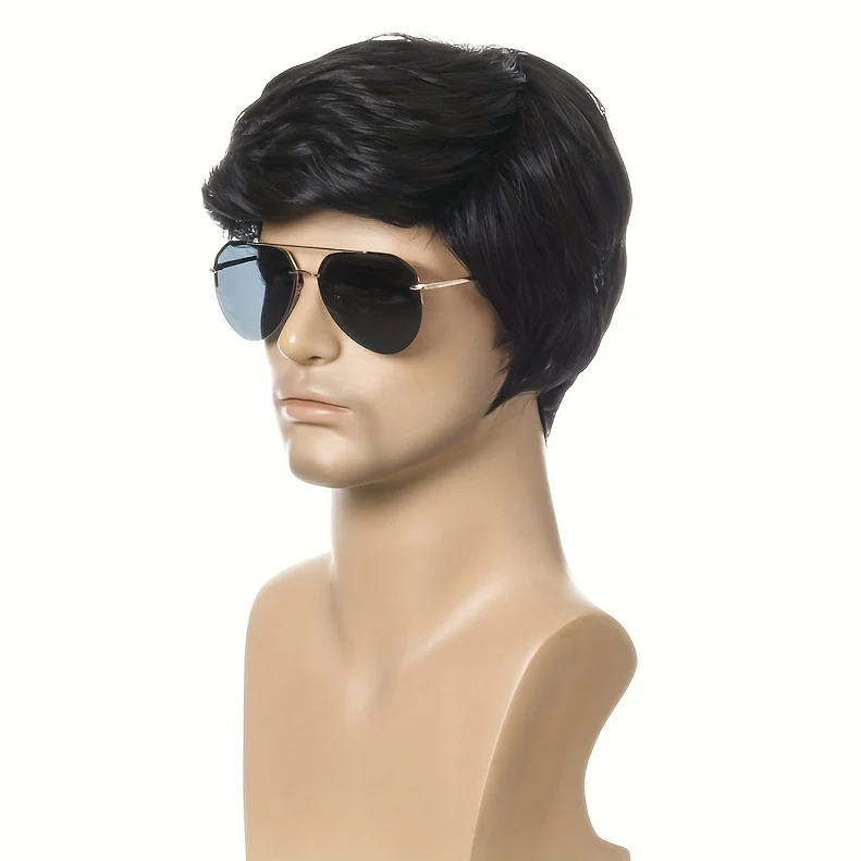 Perruque courte bouclée pour homme – Fibre synthétique résistante à la chaleur