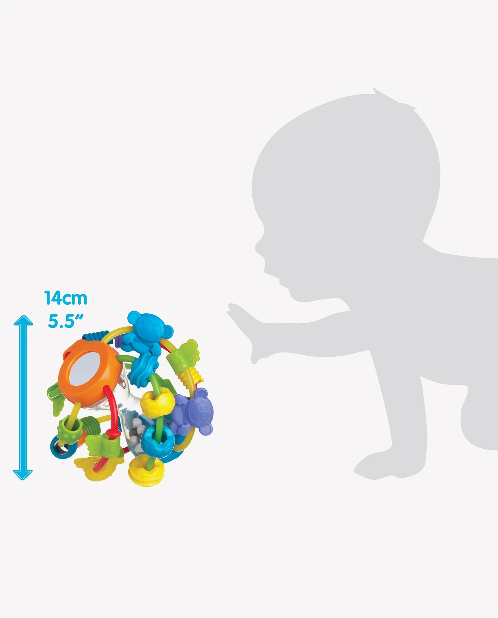Baby’s leren door te spelen en de Speel & Leer Bal is ontworpen om dit te stimuleren. Deze leuke bal zit vol met rollend plezier. Het beschikt over een unieke plastic cilinder met ratelende ballen erin, die de baby zeker zal vermaken en die het gehoor van de baby zullen ontwikkelen. De verschillende oppervlaktes en de levendige kleuren zullen de baby zijn zintuigen activeren. Daarnaast is er een spiegel die de baby helpt met het leren over reflecties en het ontwikkelen van zelfbewustzijn.