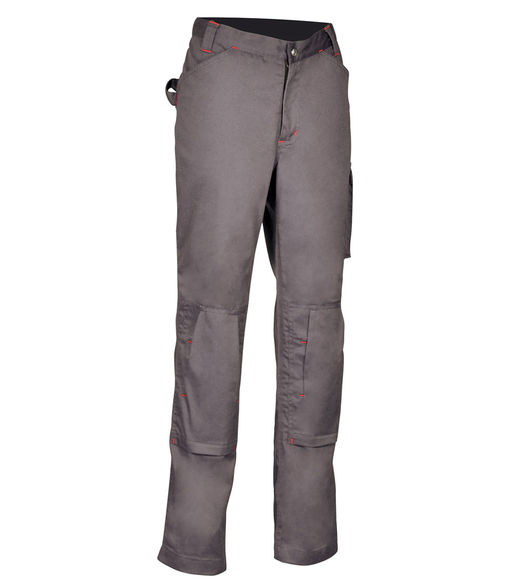 1 poche à l’arrière avec velcro. Elastique à la taille. Passant porte-marteau. Poche latérale. Poche pour mètre pliant. Poches larges à l’avant. Poches pour insertion genouillère ajustables. 65% polyester – 35% coton.