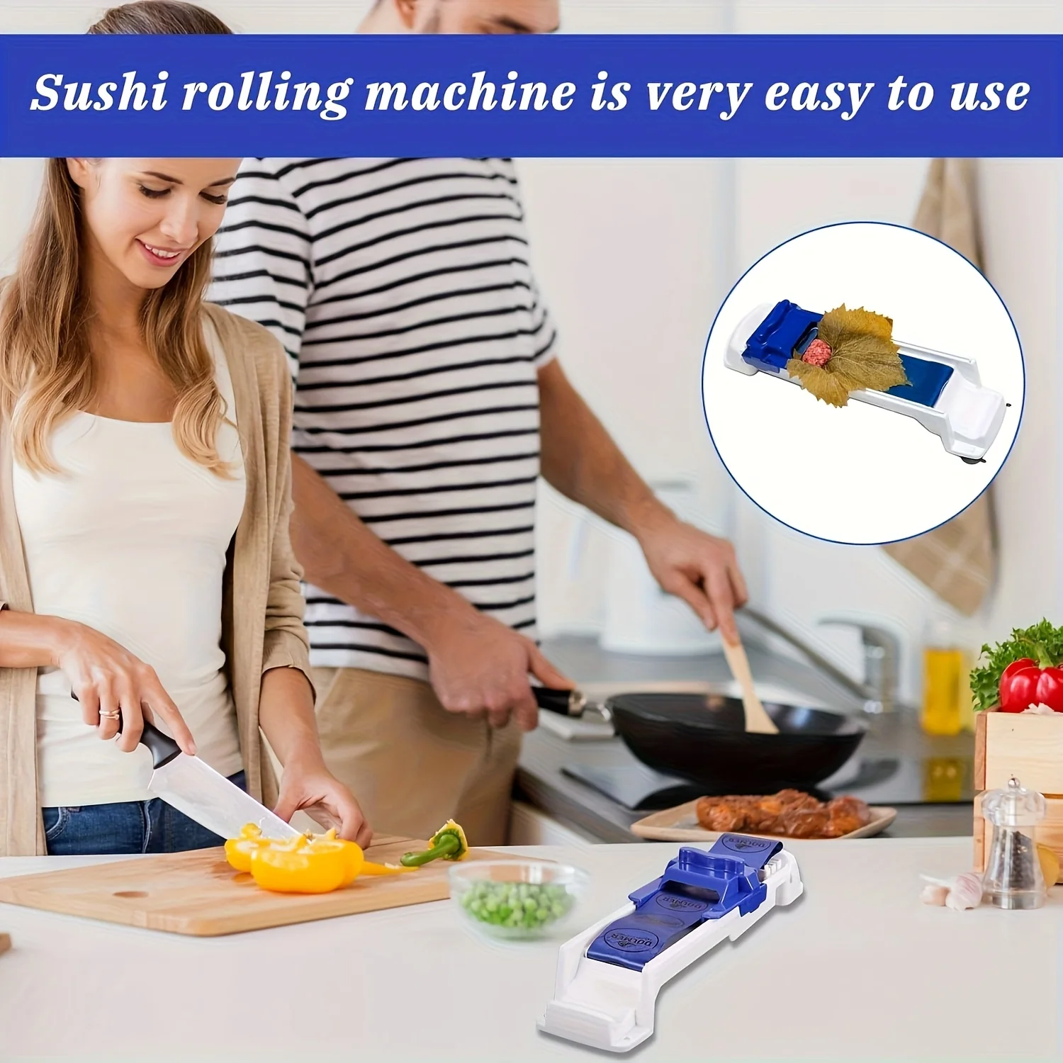 Rouleau manuel robuste avec poignée antidérapante, idéal pour sushis, rouleaux de printemps, nems, feuilles de vigne farcies et raviolis