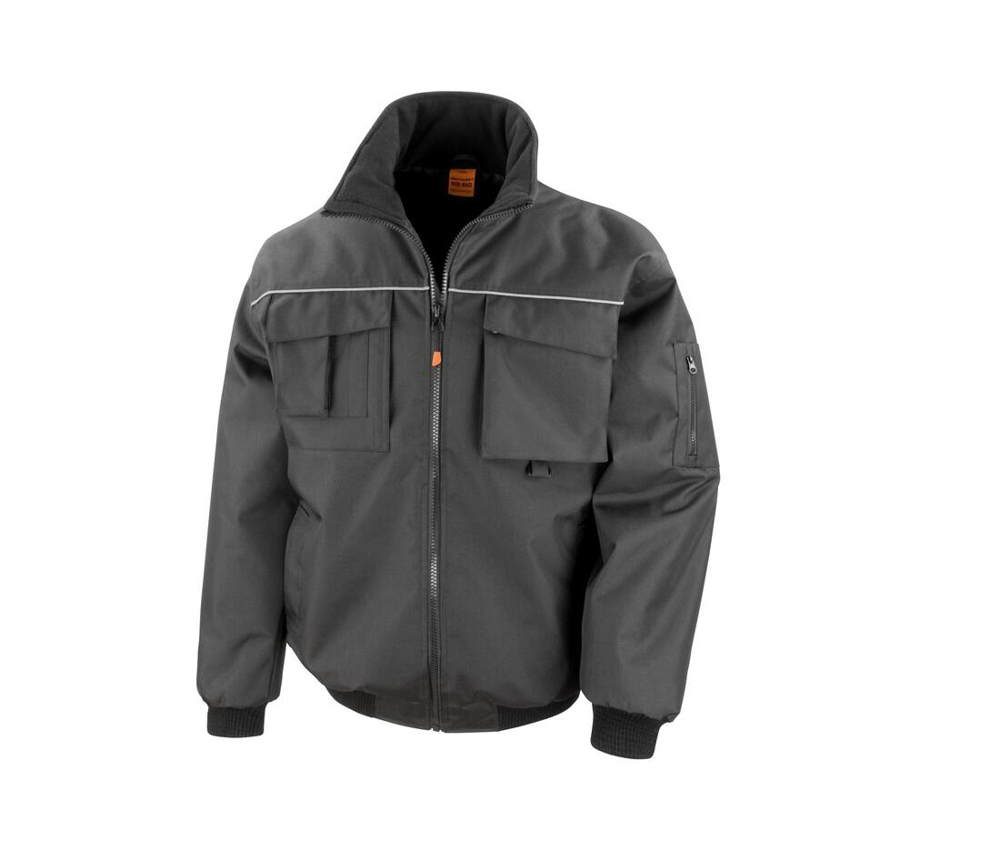 Veste de travail. Fermeture zippée résistante à l’avant. Coutures thermocollées. Taille et poignets élastiqués. Grandes poches avant. Poche poitrine gauche semi-amovible avec fermeture Velcro® et zippée pour faciliter le marquage. Poche poitrine droite. Passepoil réfléchissant. Doublure matelassée (forme losange). Col montant avec doublure en micropolaire. 4 jeux de tirettes interchangeables de coloris différent fournis. Accès pour personnalisation dans le dos et sur la poitrine gauche. Extérieur : 100% polyester Oxford avec enduction PVC. Intérieur : 100% polyester taffeta 190T. Rembourrage : 100% polyester.