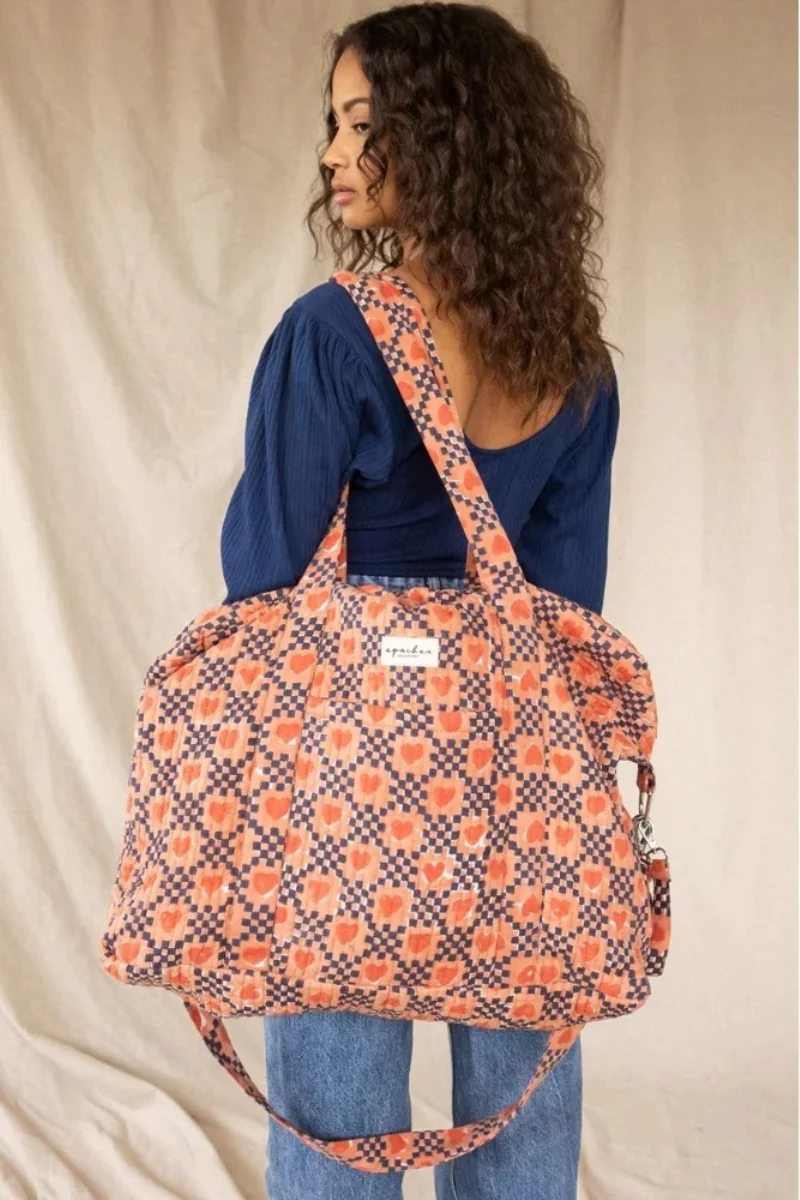 Découvrez le tout nouveau sac à langer Thaila Amor Rust en coton imprimé matelassé. Il combine élégance et fonctionnalité et dispose de poches astucieuses et d’un mousqueton pratique.