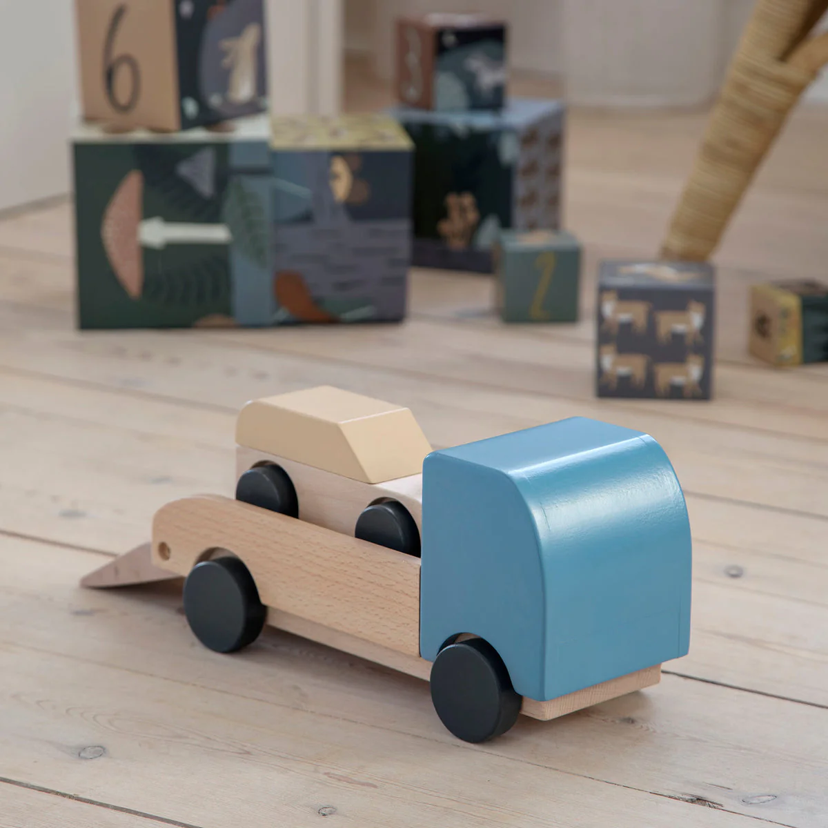 Sebra – Houten Speelgoed vrachtwagen met oplegger en auto