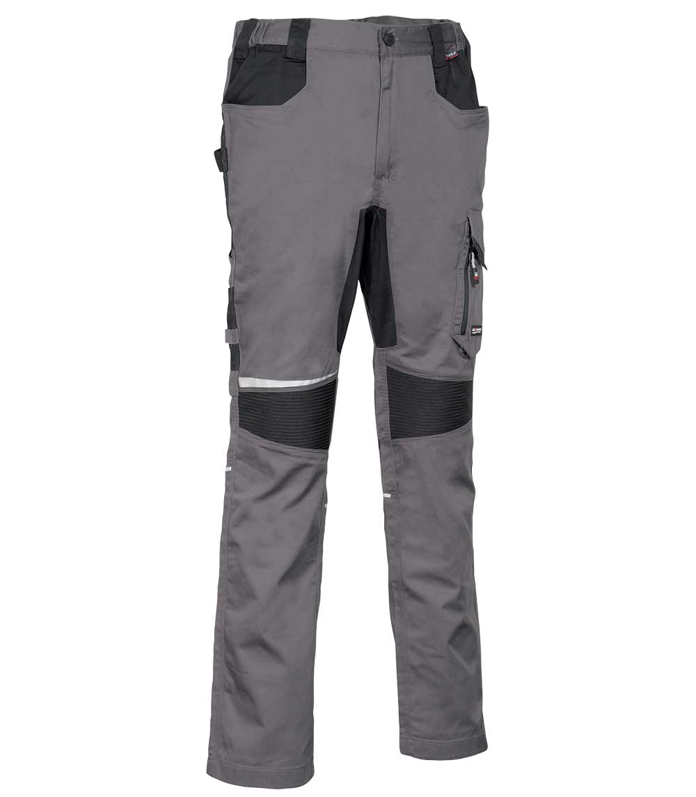 Double poche postérieure dont une avec patte et fermeture velcro. Elastique intérieur à la taille. Entrejambe et partie postérieure en tissu élastique pour une plus grande liberté de mouvement. Insert au genou en tissu côtelé strecht pour une grande flexibilité de mouvement. Inserts réfléchissants. Jambes et genoux à coupe ergonomique. Passant porte-marteau. Poche latérale à double ouverture (fermeture avec velcro et zip). Poche pour mètre pliant. Poches larges à l’avant. 60% coton – 40% polyester / Tissu élastique: 60% coton – 37% polyester – 3% élasthanne.