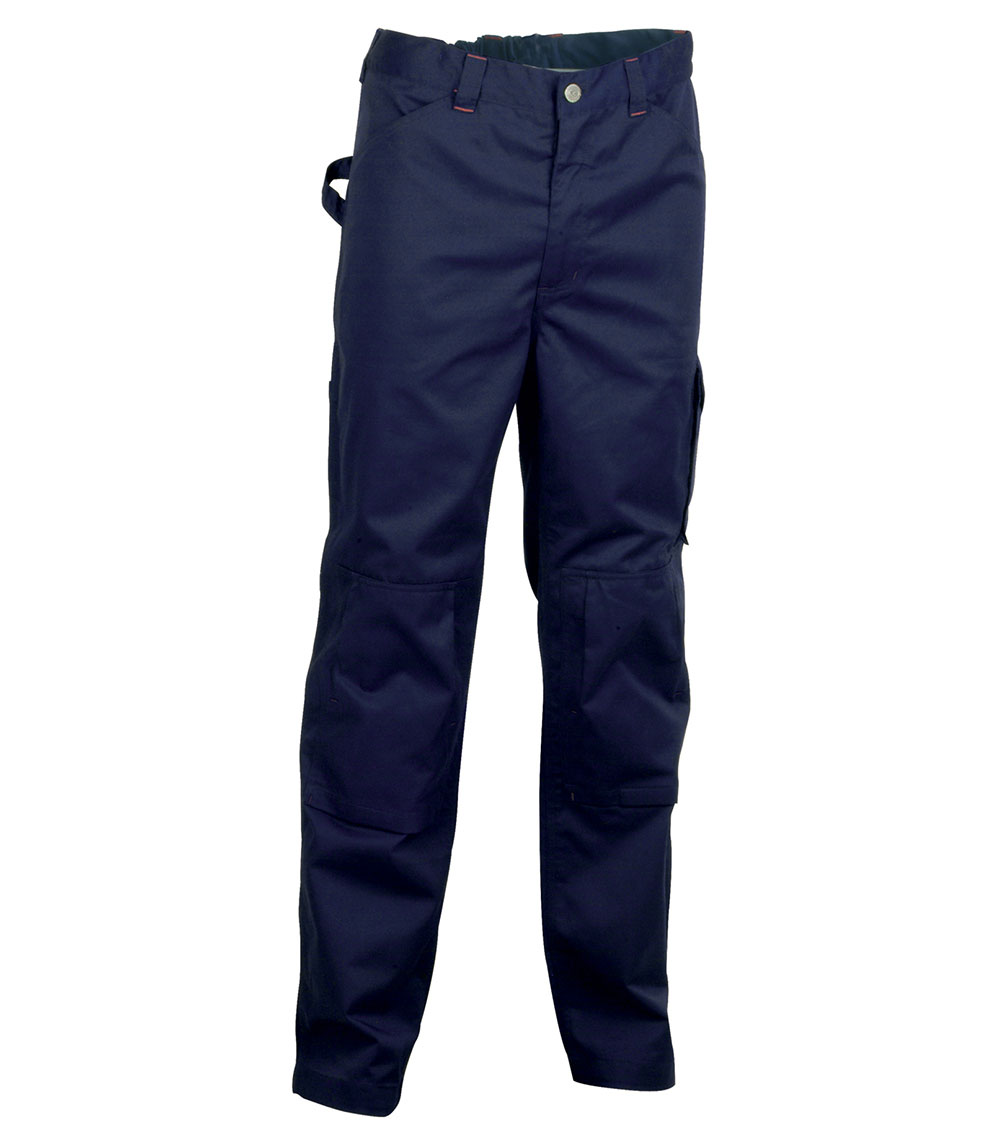 Elastique à la taille. Passant porte-marteau. Poche à l’arrière avec velcro. Poche latérale. Poche pour mètre pliant. Poches larges à l’avant. Poches pour insertion genouillère ajustables. 100% coton.