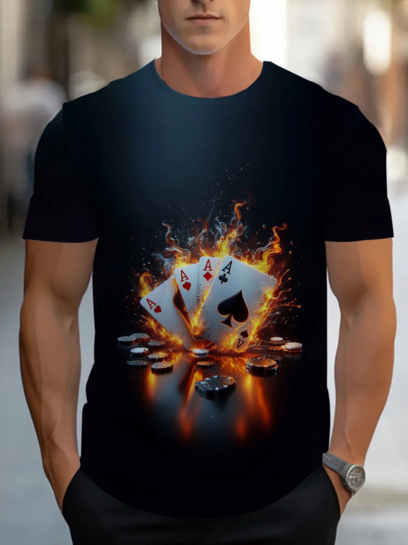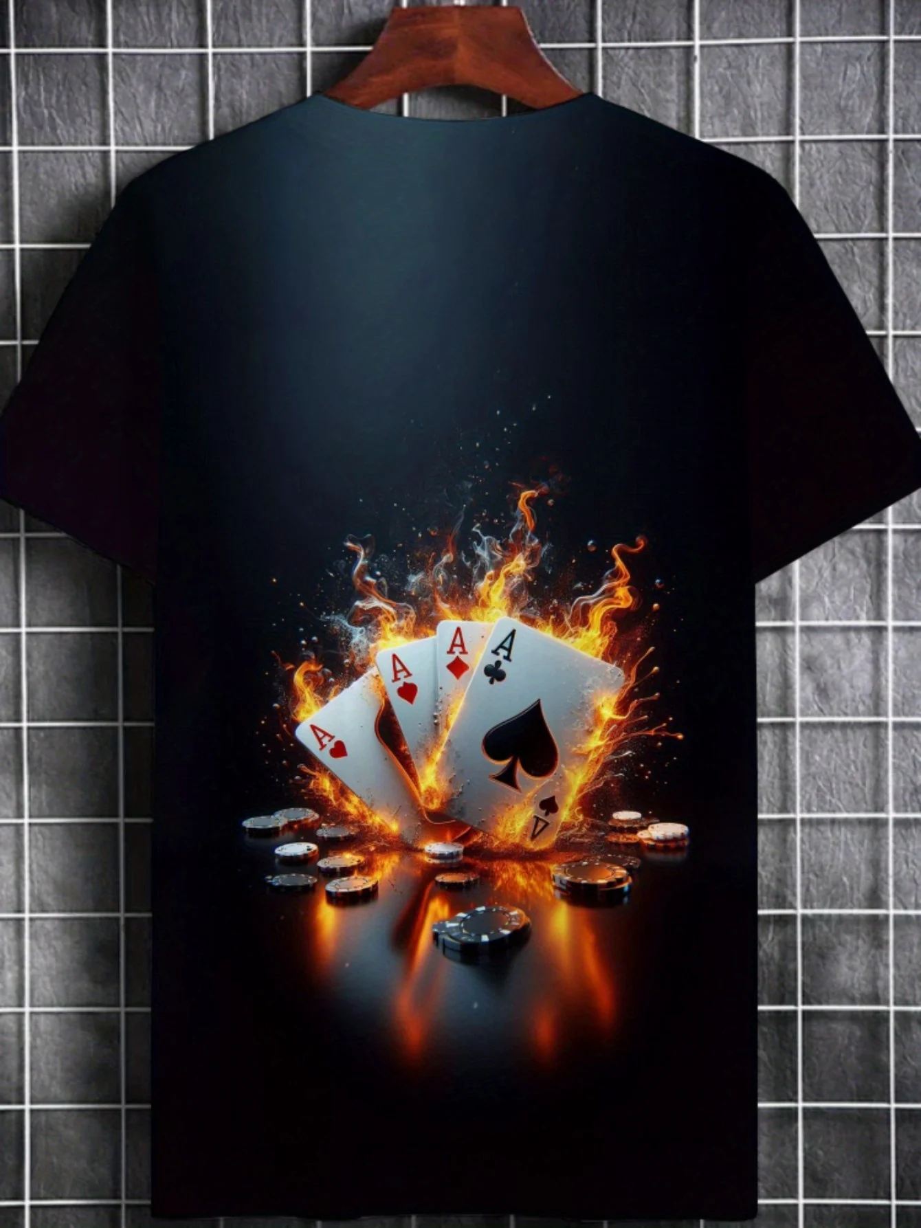 T-shirt noir pour homme avec motif dynamique de cartes de poker