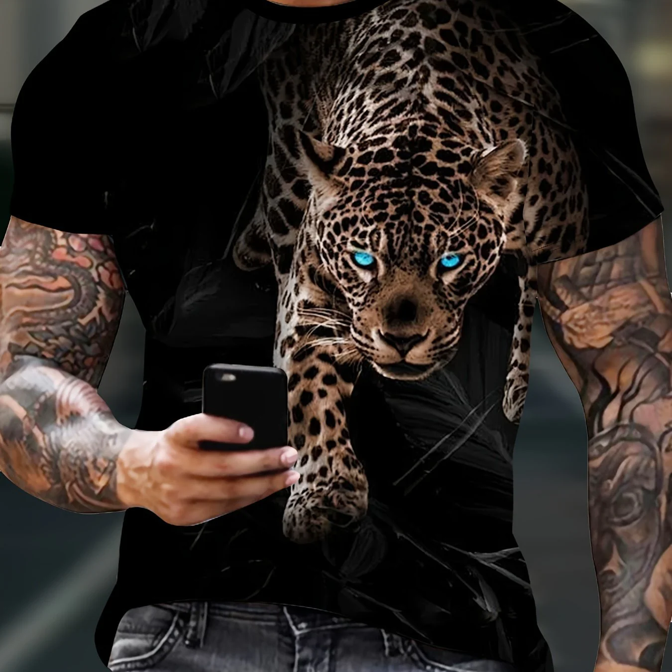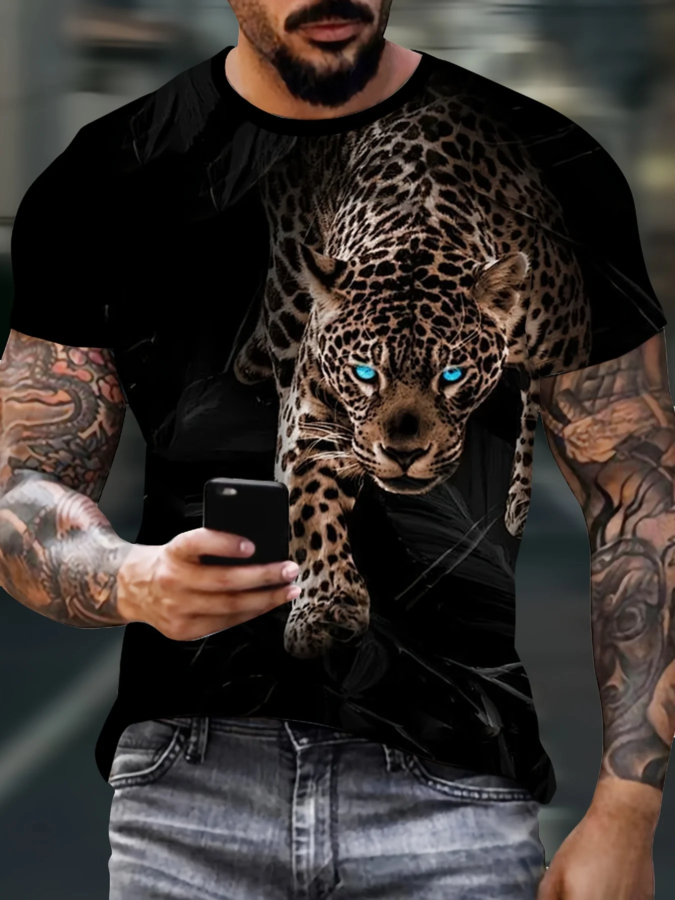 T-shirt ras du cou à manches courtes et imprimé léopard