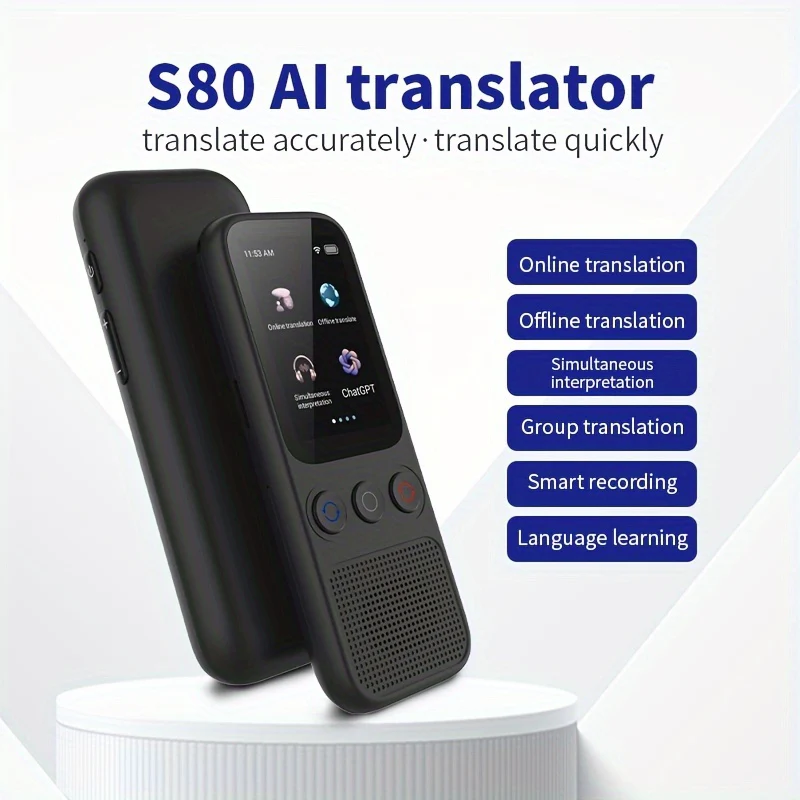 Traducteur vocal bidirectionnel en temps réel, compatible avec 138 langues, précis hors ligne et avec enregistrement, doté d’un écran tactile HD de 5,08 cm, idéal pour les voyages, les affaires et les études.